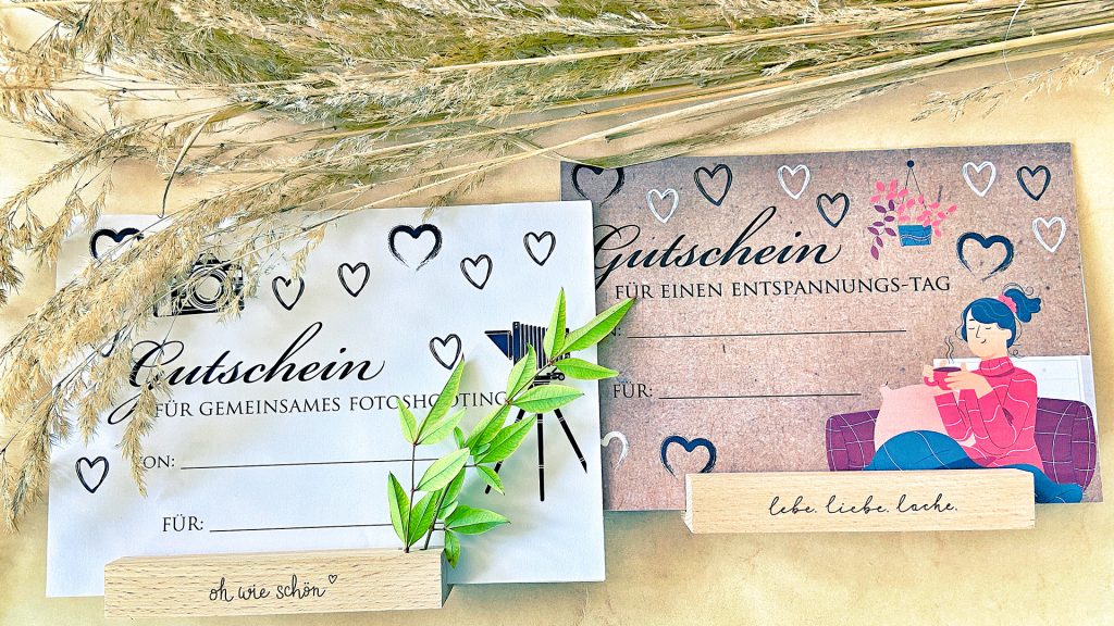 Wir haben uns einige ganz besondere „Gutscheinwerte“ ausgedacht – neben dem berühmten Frühstück im Bett findet sich etwa auch ein gemeinsames Fotoshooting oder ein Spaziergang in unserer Ideensammlung wieder. Natürlich ist auch Hilfe im Haushalt immer gern gesehen, beispielsweise beim Spülen oder Wäsche machen. Die liebevoll von uns selbst designten Gutscheine stellen wir Ihnen an dieser Stelle zur kostenfreien Nutzung zur Verfügung – und das gleich in zwei Varianten: einmal fix & fertig zum Ausdrucken, einmal zum Selbstbemalen. Der farblichen Gestaltung sind dabei natürlich keine Grenzen gesetzt – denn wer sagt, dass Herzchen immer rot sein müssen?