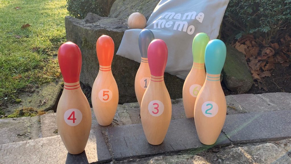 Da es dabei bekanntermaßen auch mal wilder zugehen kann, empfiehlt LittleLounge hochqualitative Holz-Spielsachen. Fündig wird man beispielsweise im Sortiment des dänischen Herstellers MAMAMEMO. Dessen Bowling-Set, bestehend aus sechs verschiedenfarbigen Pins und zwei Bowlingkugeln, eignet sich ideal für spaßige Nachmittage und Abende im Freien: Die Kinder sind beschäftigt und die Erwachsenen haben endlich mal wieder Zeit für sich – können sich aber natürlich auch in die ein oder andere Bowling-Runde einklinken.