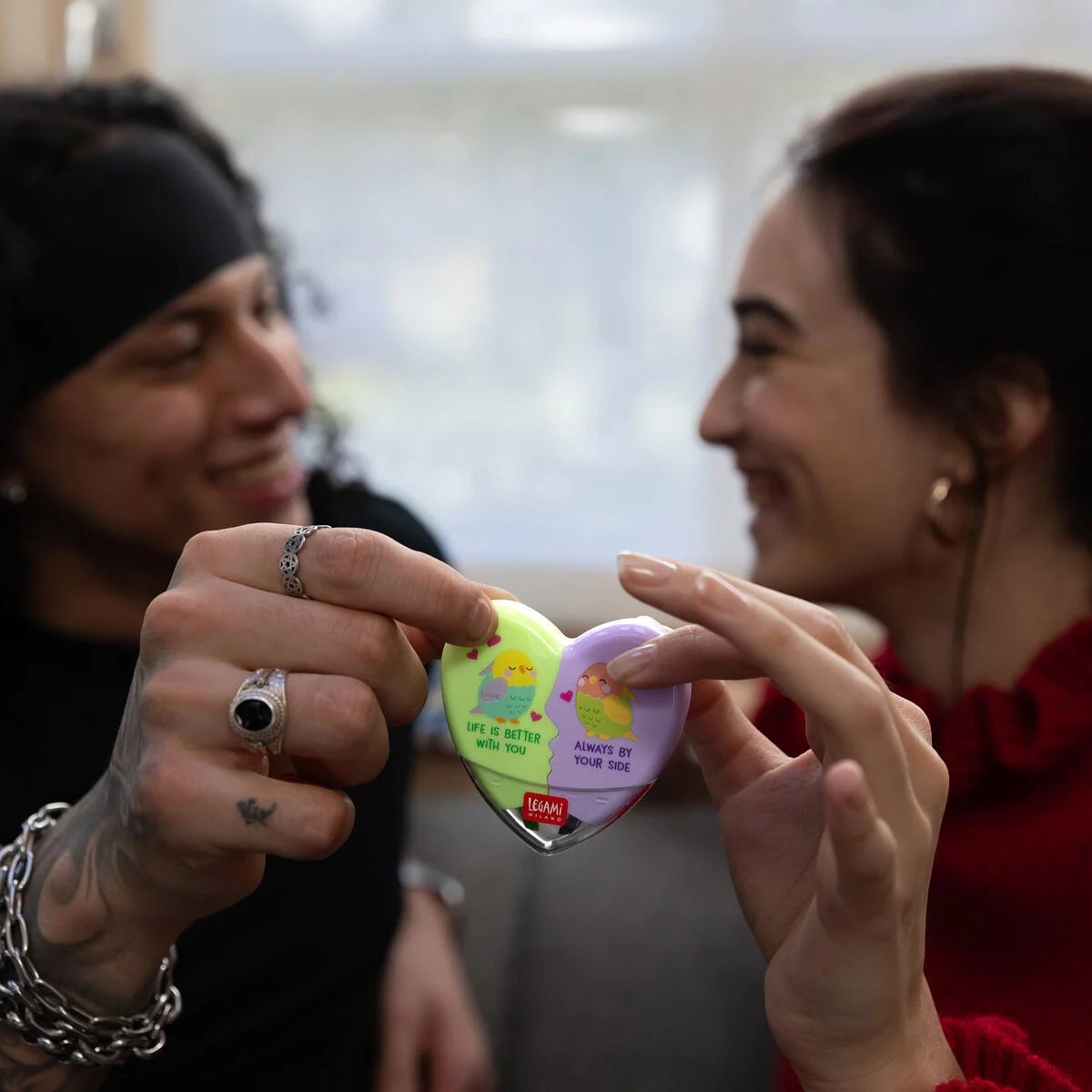 Wenn wir ein bisschen Liebe finden, müssen wir sie zeigen! Das ist kein Problem mit diesem 2-in-1-Textmarker von Legami in der limitierten Valentinstags-Edition: Die Herzform lässt sich in zwei Teile teilen, um alles hervorzuheben, worauf es ankommt. Keine Sorge: Hier wird kein Herz gebrochen. Die zwei Hälften lassen sich natürlich ganz einfach wieder zusammenstecken.