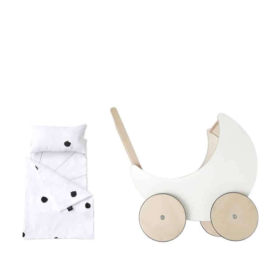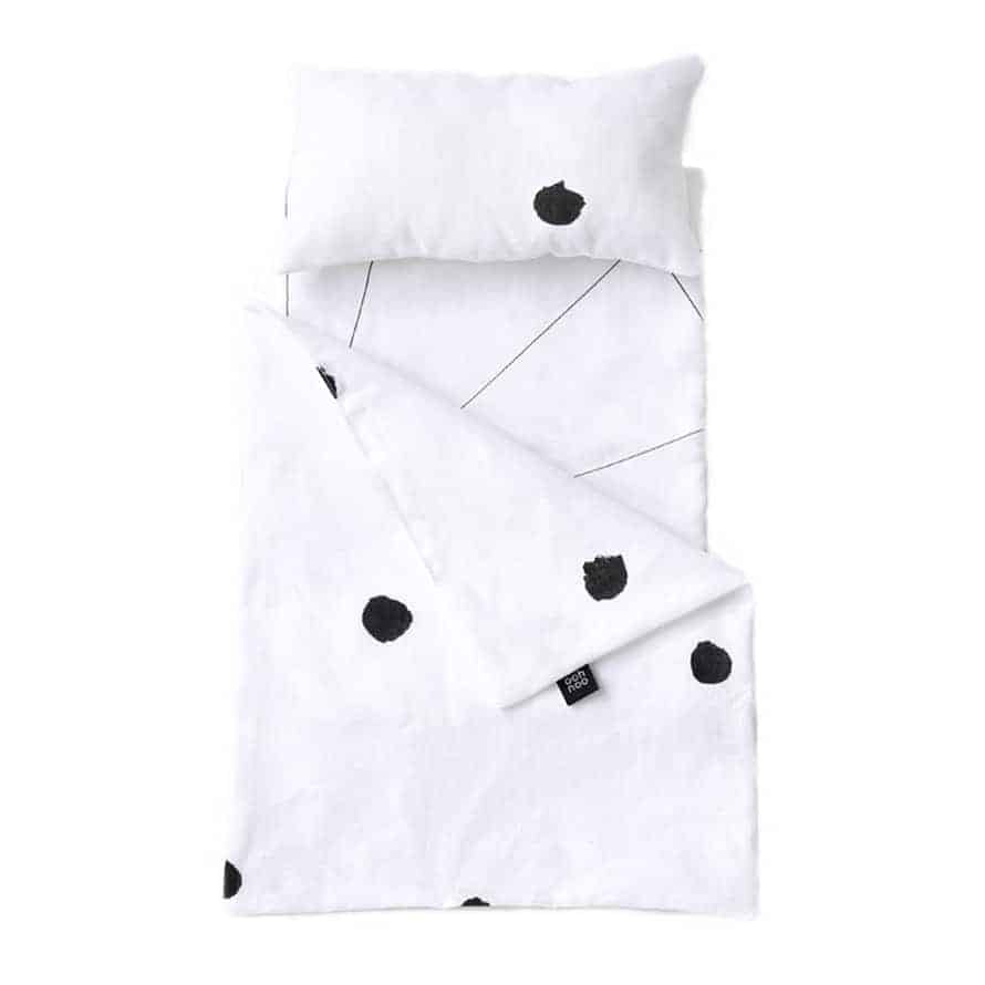 Damit es alle „Fahrgäste“ im Holz-Puppenwagen von ooh noo auch schön kuschelig haben, ist dieser Satz frischer Bettwäsche optimal geeignet. Die zusammenpassende Decke und das Kissen bestechen zudem mit ihrem hübschen Muster – in diesem Fall den kleinen, schwarzen Pünktchen auf elegantem weiß. Eine Unterlage ist im Lieferumfang enthalten.