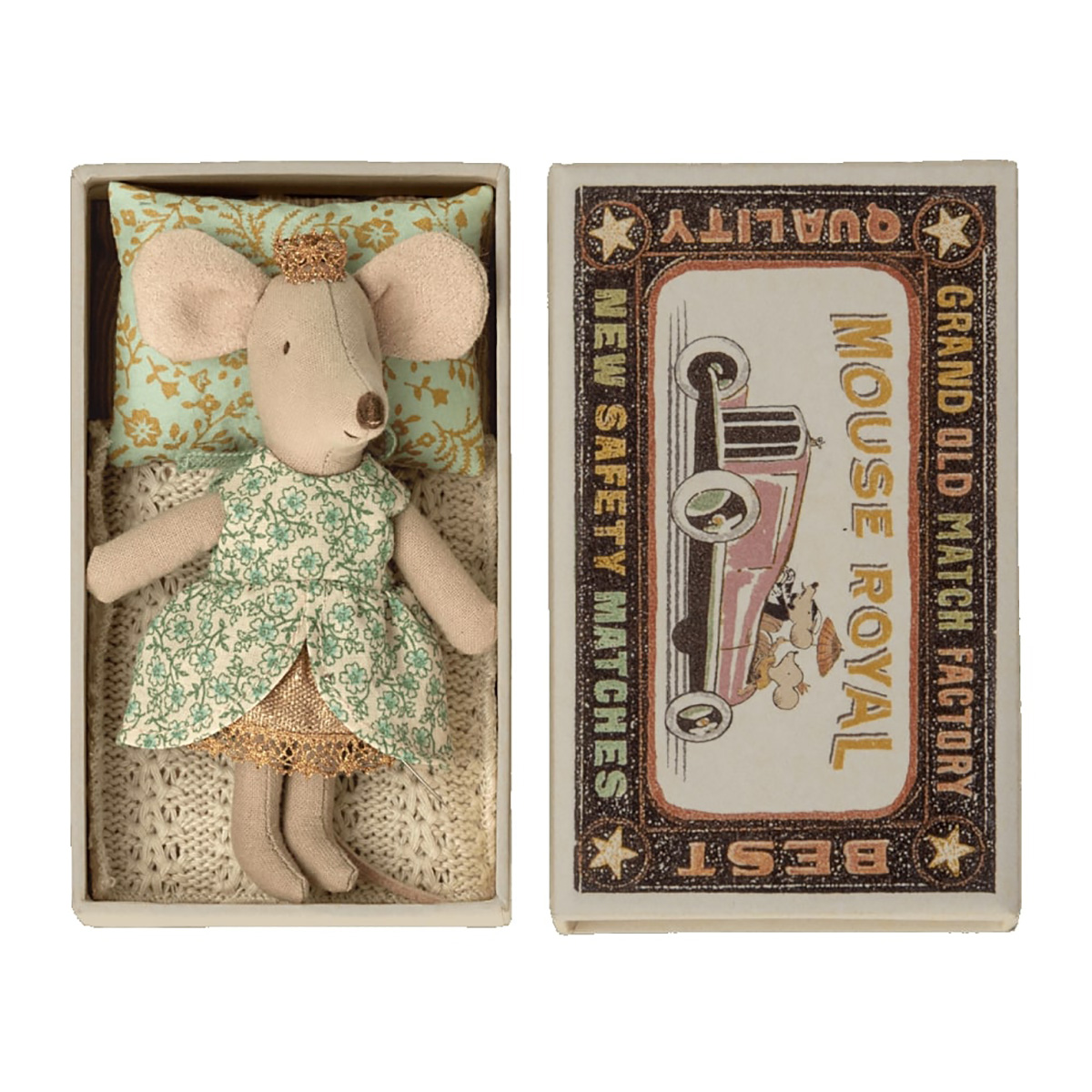 Dieses zauberhafte Familienmitglied der Matchbox-Mäuse-Familie von Maileg macht es sich gerne in einem kleinen Streichholz-Schächtelchen gemütlich, wenn im Märchenland die Nacht einkehrt – denn auch Prinzessinnen brauchen irgendwann ihren Schönheitsschlaf. Das Schächtelchen hat natürlich einen passend „magischen“ Aufdruck. Maileg setzt bei der Produktion der Kuschelmäuse auf eine hochwertige Baumwoll- und Leinen-Komposition, was wiederum für ein angenehmes Gefühl beim Spielen sorgt.