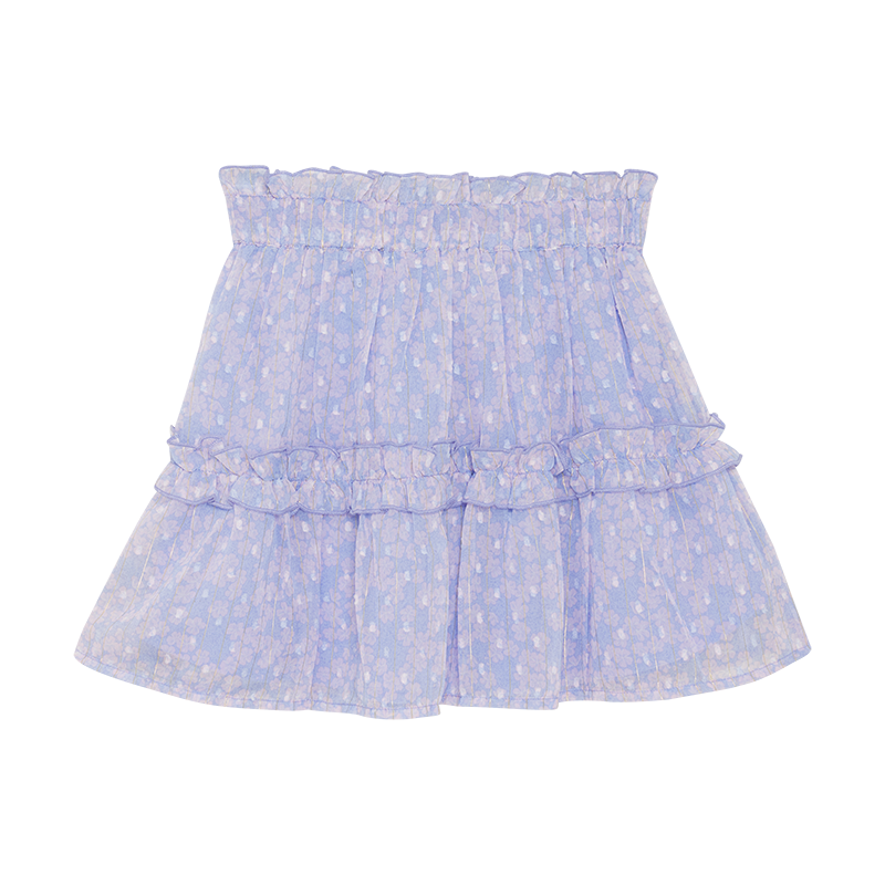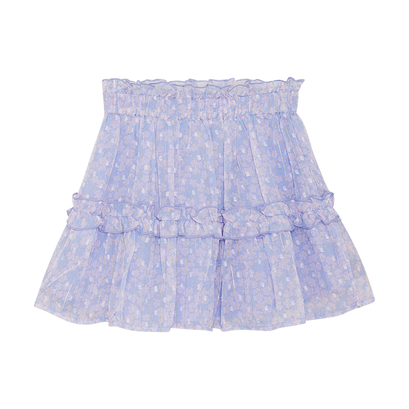 Rock mit Gummizug in der Taille. Dieser Rock hat eine Rüsche an der Taille und am Schnitt in der Mitte des Rocks.