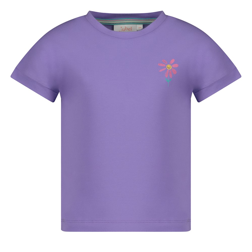 T-Shirt mit Rückendruck – Rolling into Spring (Violett)