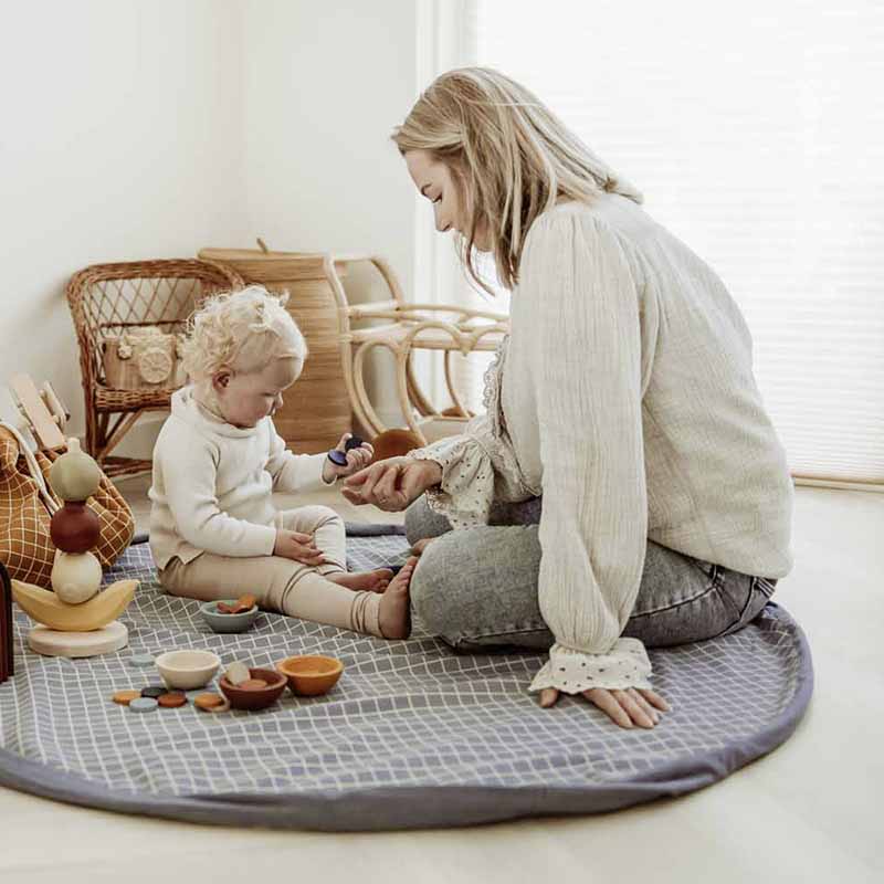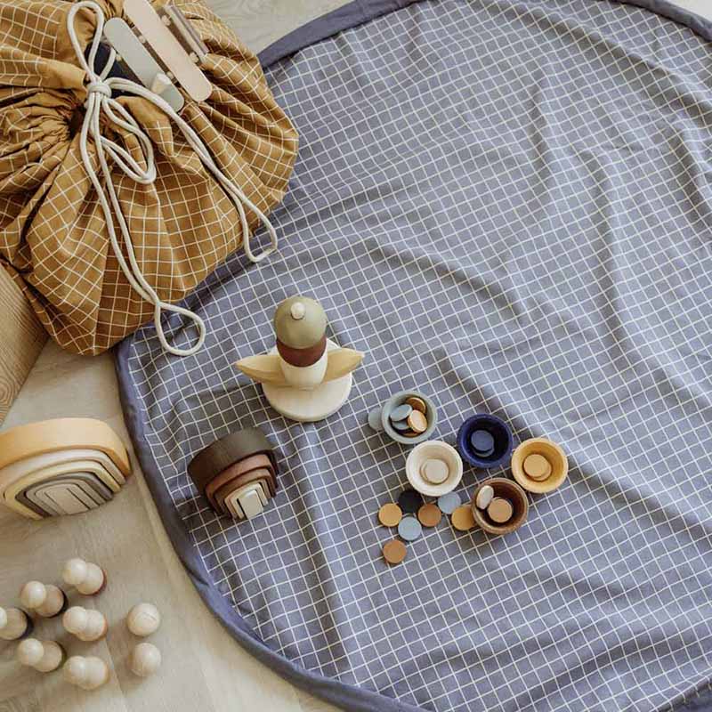 Die Toy Storage Bags der belgischen Marke Play&Go sind weit mehr als nur Spielteppiche für aktive Kids: Sie dienen zeitgleich auch als Aufbewahrungsbeutel. Nach dem Spielen am Boden können sie mitsamt dem darauf befindlichen Spielzeug einfach zusammengerollt, zugeschnürt und verstaut werden. Somit sind sie auch ideal für unterwegs geeignet und können überall hin mitgenommen werden. Dieser Toy Storage Bag entstammt der „Organic“-Kollektion, die vor allem auf nachhaltiges Material und eine hochwertige Verarbeitung setzt. Die Spielmatten bestehen zu 100% aus GOTS-zertifizierter Baumwolle, sprich: rein biologisch erzeugten Naturfasern. Dazu kommt ein modernes Muster, das sich in jedem Ambiente gut macht – und natürlich auch unterwegs!