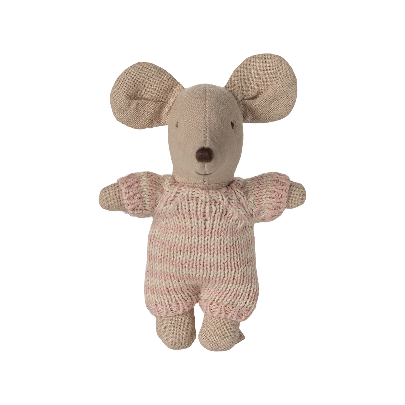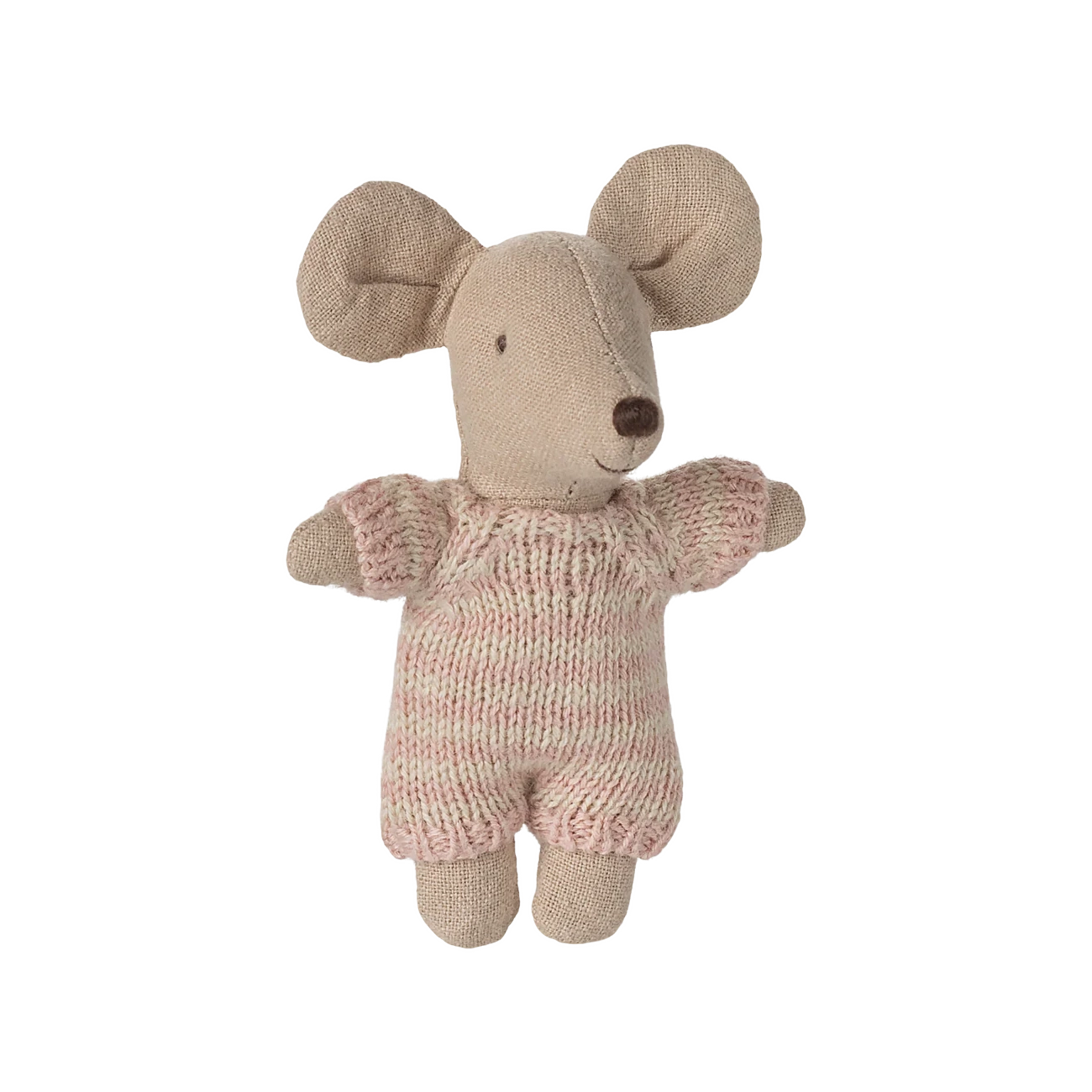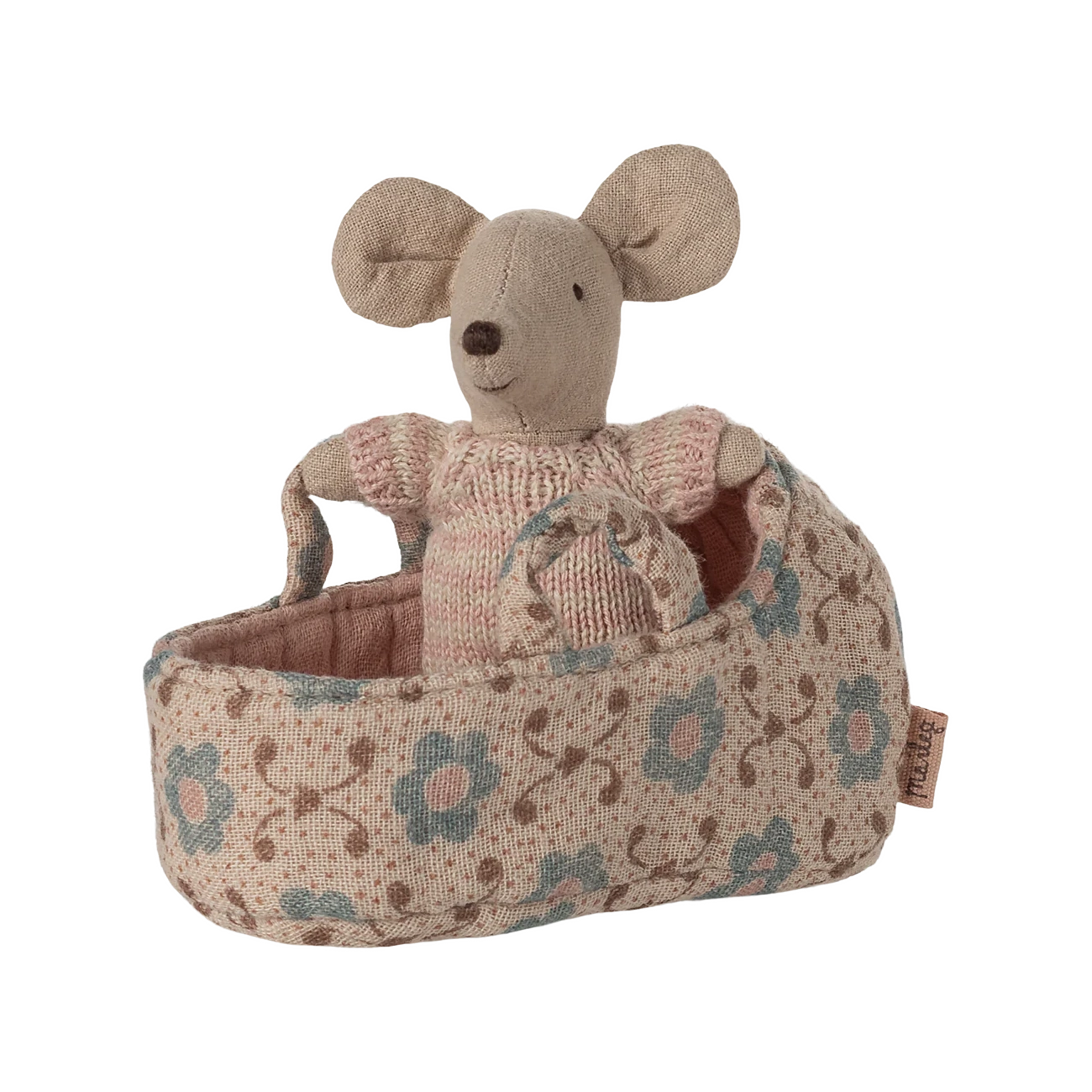 Diese kleine Babymaus aus der Maileg Familie macht es sich liebend gerne in ihrer kuscheligen, gesteppten Tragetasche gemütlich. Sie trägt einen extraweichen und gestreiften Strickanzug, in dem sie immer bequem liegt oder sitzt. Maileg setzt bei der Produktion der Kuschelmäuse auf eine hochwertige Baumwoll- und Leinen-Komposition, was wiederum für ein angenehmes Gefühl beim Spielen sorgt.