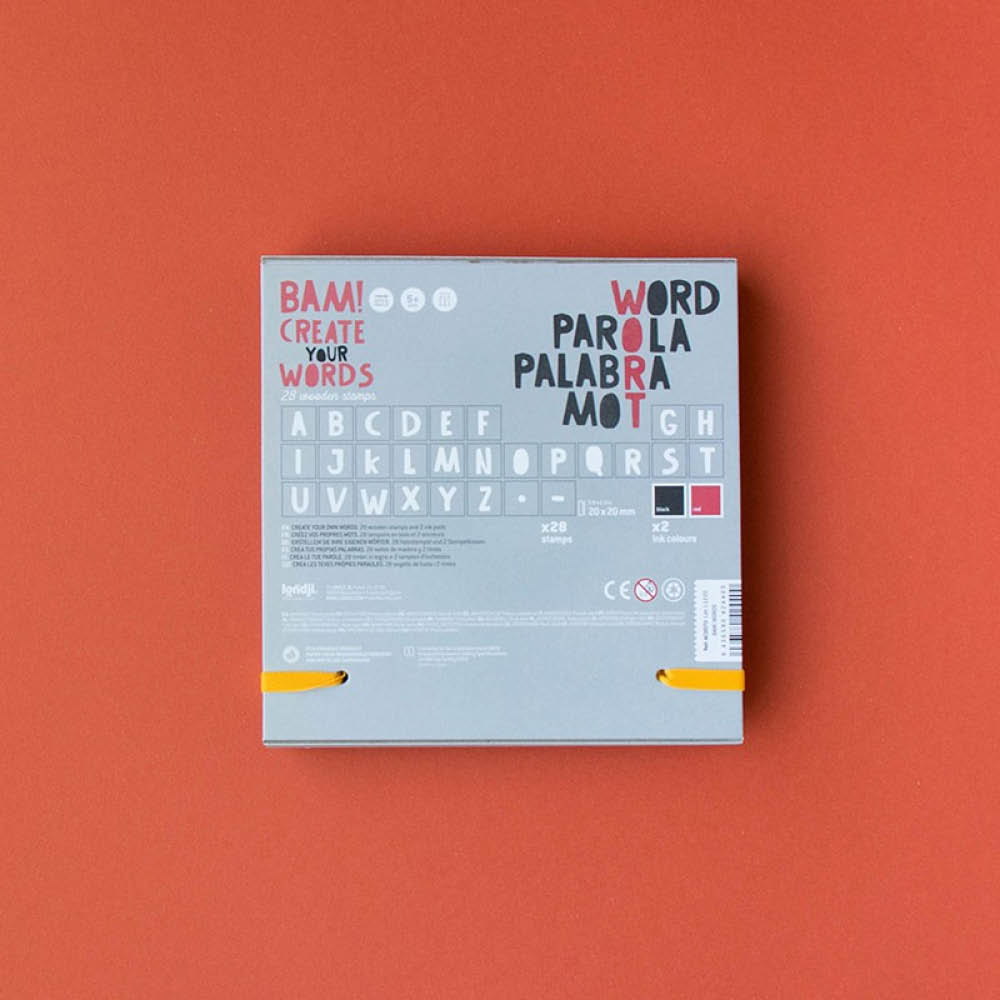 Dieses Wörter-Stempel-Set von Londji macht das Kreieren von Worten zu einem spaßigen Ereignis. Die Stempel werden einfach auf eins der beiden mitgelieferten Stempelkissen gedrückt und können anschließend ihren Abdruck auf Papier und anderen geeigneten Untergründen hinterlassen. Kinder verbessern durch das Set spielerisch ihren Umgang mit der Sprache.