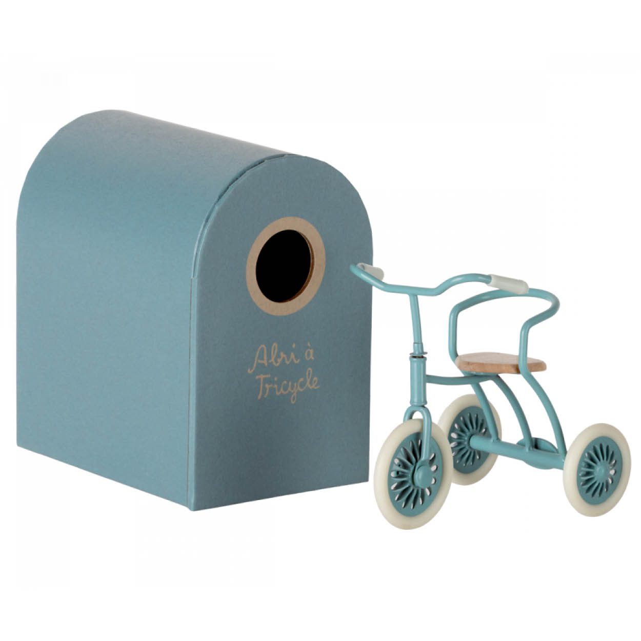 Sportlich affine Maileg-Mäuschen freuen sich über dieses niedliche Zubehör des dänischen Kult-Herstellers: Das Dreirad im Vintage-Stil kommt inklusive schicker Mini-Garage daher. Ideal kombinierbar sind die Gefährte mit den Dreiradmäusen von Maileg, die extra für die Nutzung der Räder über Magnete an den Handflächen verfügen.