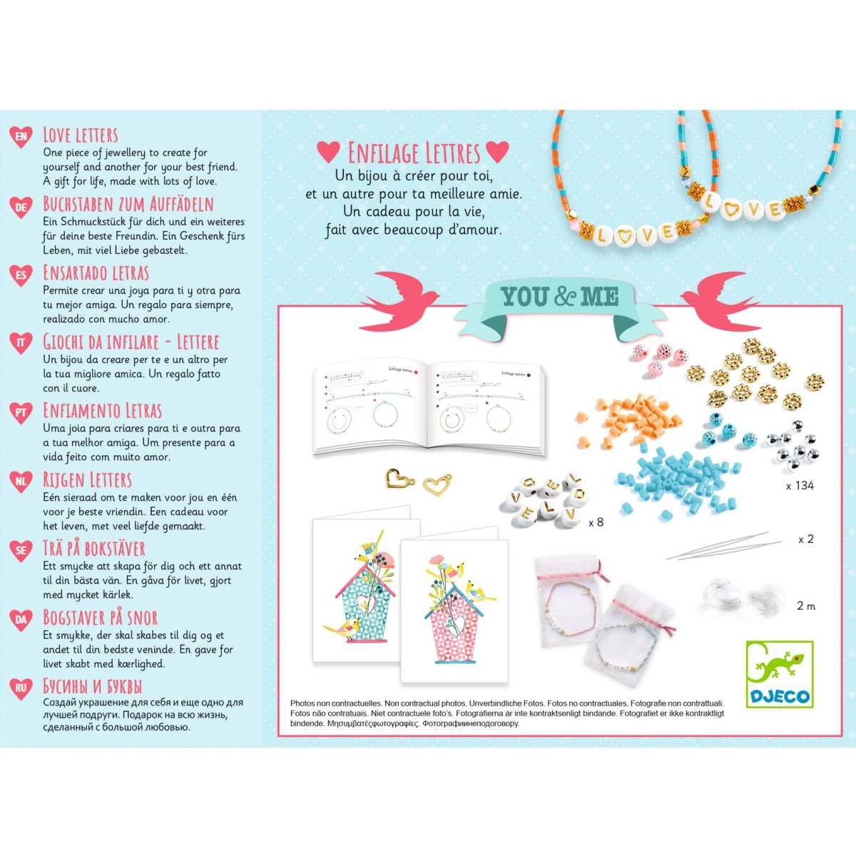 Mit diesem Bastel-Set aus der Kollektion „You & Me“ von DJECO können gleich zwei hübsche Freundschaftarmbänder kreiert werden. Es eignet sich damit perfekt zum gemeinsamen Basteln – oder als Geschenk für die beste Freundin. Jede Packung beinhaltet alle nötigen Materialien, darunter Perlen, Faden, ein Verschluss und eine bunte Anleitung. Zudem sind zwei Organza-Beutel sowie illustrierte Kärtchen enthalten. Auf diese Weise können kleine Botschaften aufgeschrieben und übermittelt werden – ein echter Beweis für ewige Freundschaft!