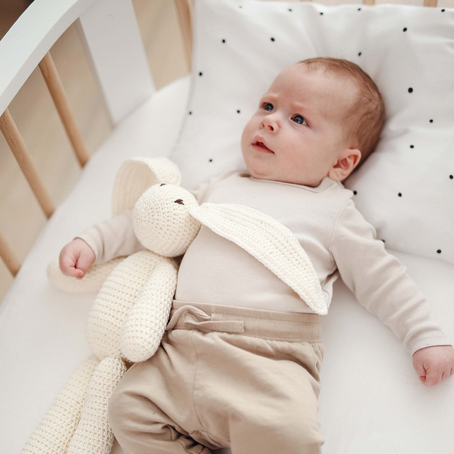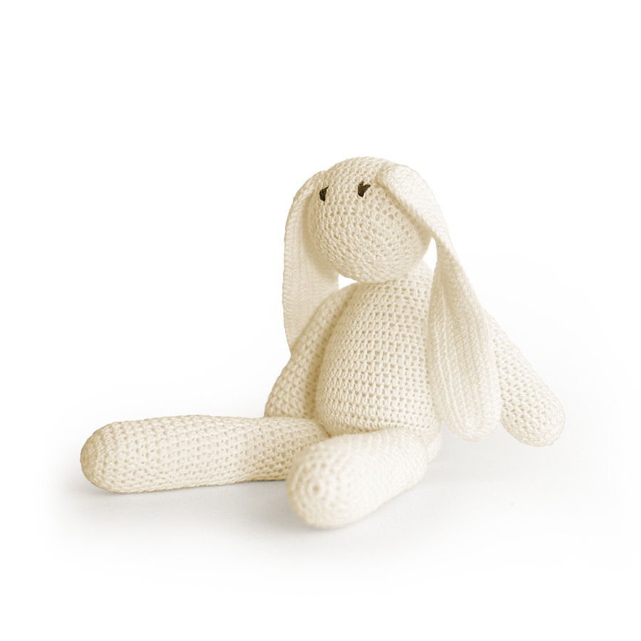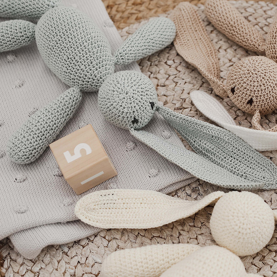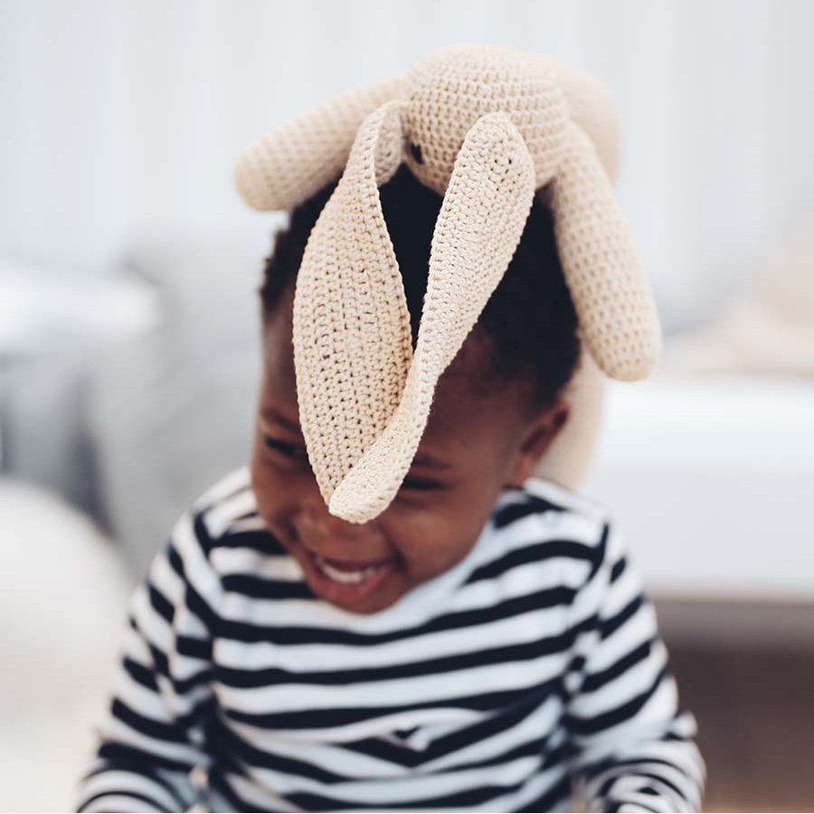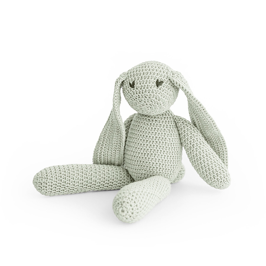 Dieses von Hand gehäkelte Baumwoll-Häschen von ooh noo ist ein ganz besonders süßer Spielkamerad. Seine Äuglein sind kleine, aufgestickte Herzchen, die ihrerseits auch Kinderaugen zum Funkeln bringen. Der Hase ist in verschiedenen Farben erhältlich.