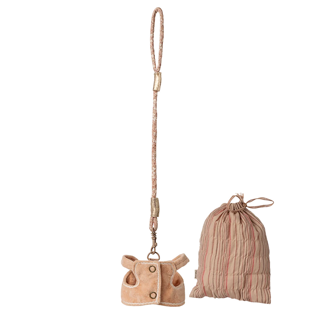 Dieses Geschirr ist ideal, um mit den schlafenden Hasen aus der Maileg Welt einen kleinen Spaziergang zu machen. Das kleine zweiteilige Set ist in einer Stofftasche verpackt, die zur Aufbewahrung des Zubehörs verwendet werden kann.