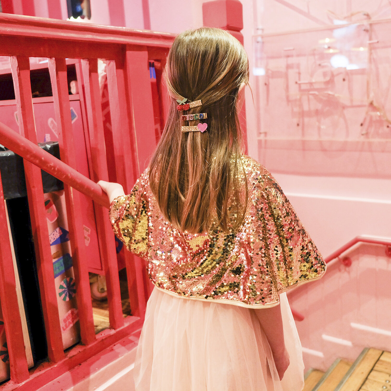 Mit diesem Cape von Rockahula sehen die Kleinen nicht nur zur Faschingszeit super modisch aus! Verziert mit schimmernden goldenen Pailletten und einem glitzernden goldenen Stern-Klettverschluss sieht es einfach umwerfend aus. Dazu kommt, dass es komplett mit einem goldenen Sternchenfutter gefüttert und wendbar ist – das bietet direkt doppelten Spaß!