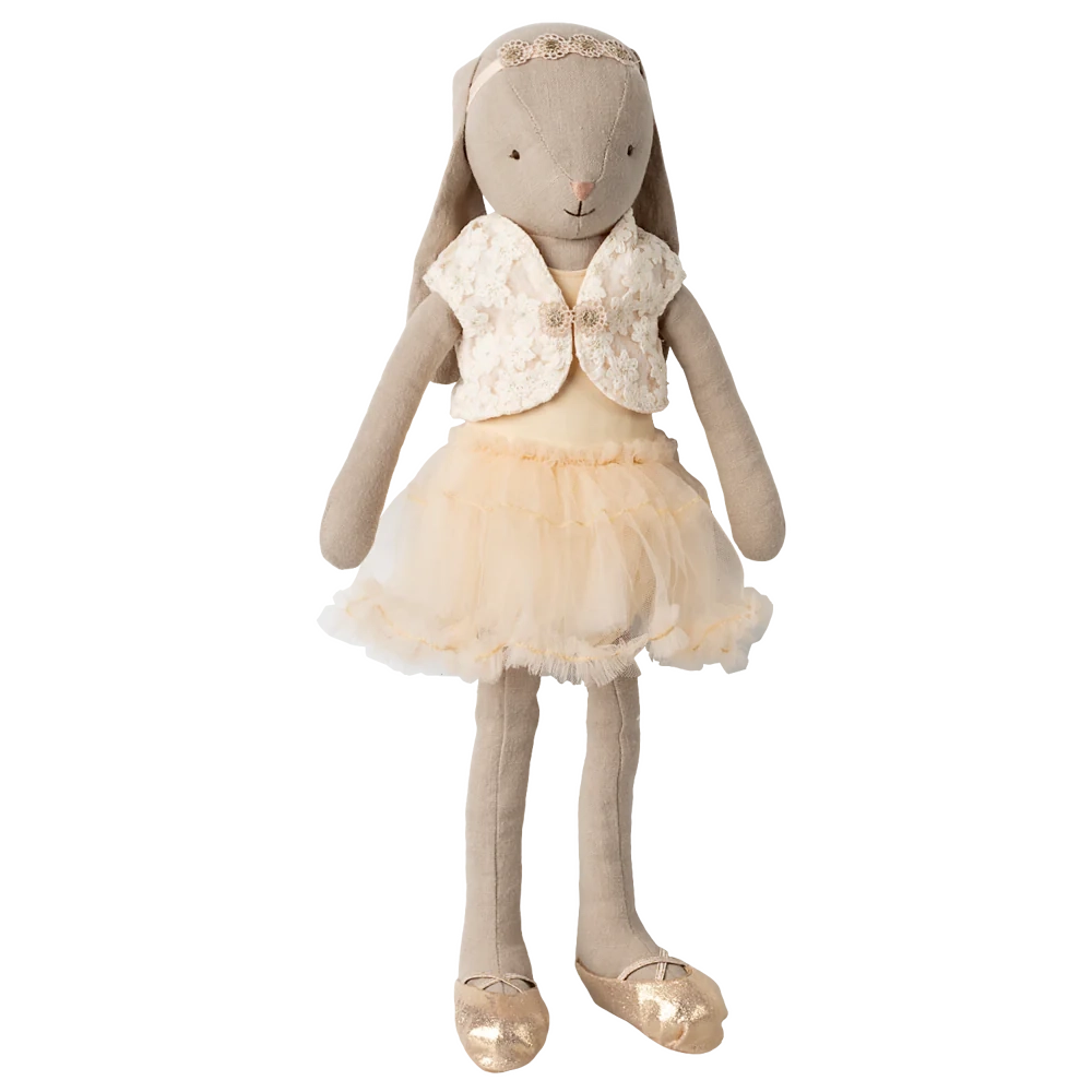 Dieser kuschelige Maileg Hase hat sich als Balletttänzerin verkleidet und freut sich auf einen neuen Tanzgefährten! Das Häschen trägt einen cremefarbenen Ballettanzug, einen Tüllrock und Ballettschuhe.
