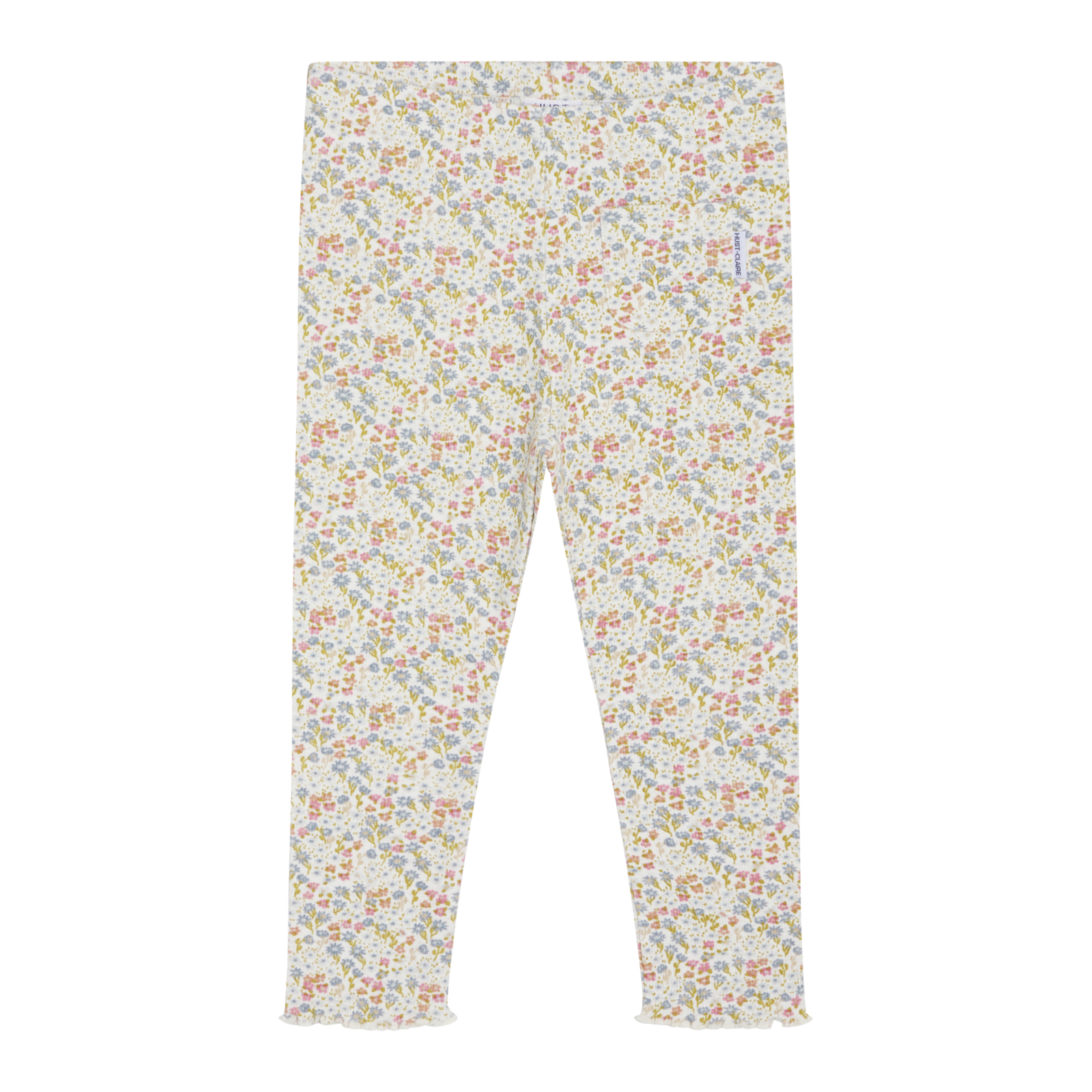 Leggings aus weicher Baumwolle mit Rippware und einem Blumenprint. Dieses Modell verfügt über einen Elastikbund in der Taille und eine Tasche vorne. Zudem hat es Babylock-Abschlüsse an den Beinen.
