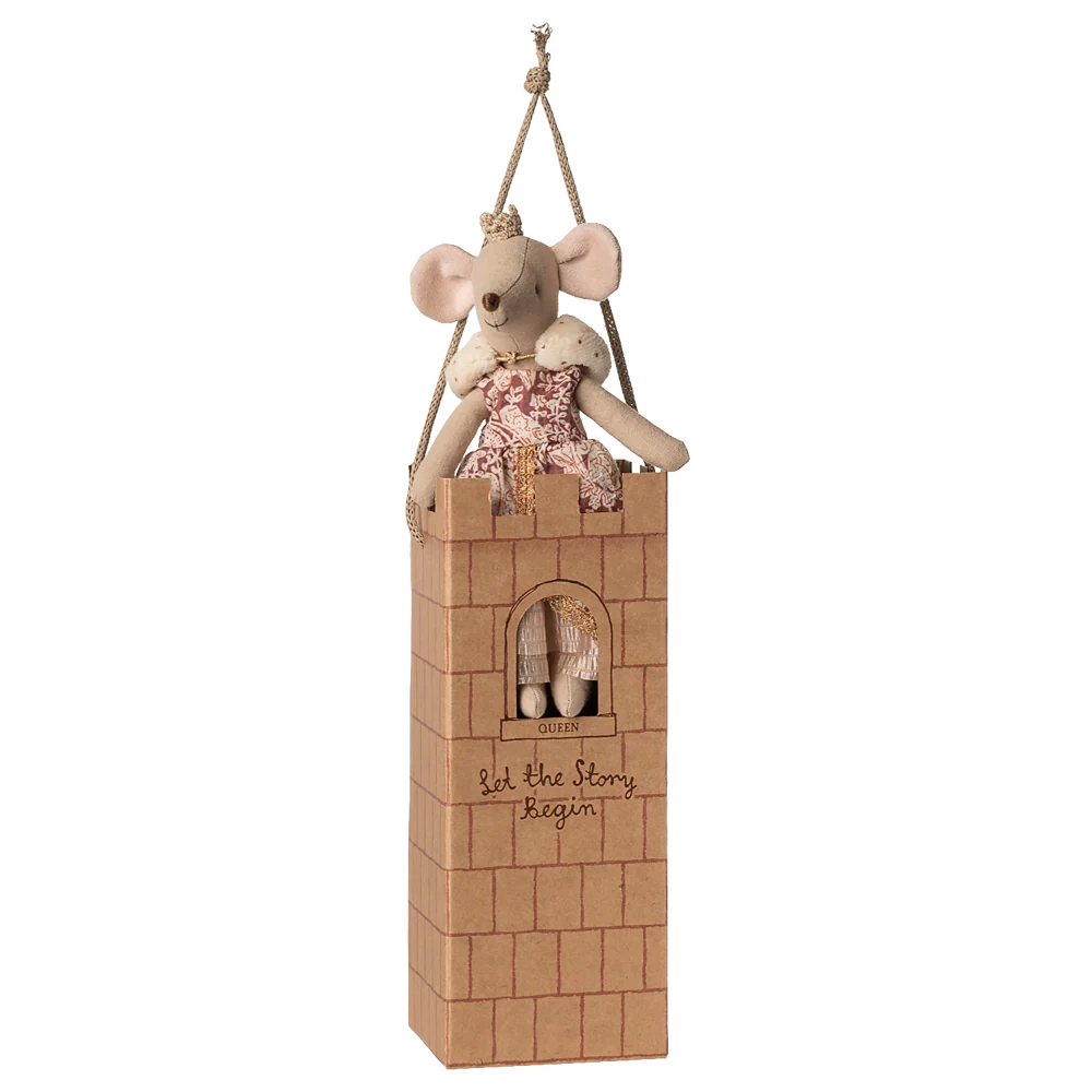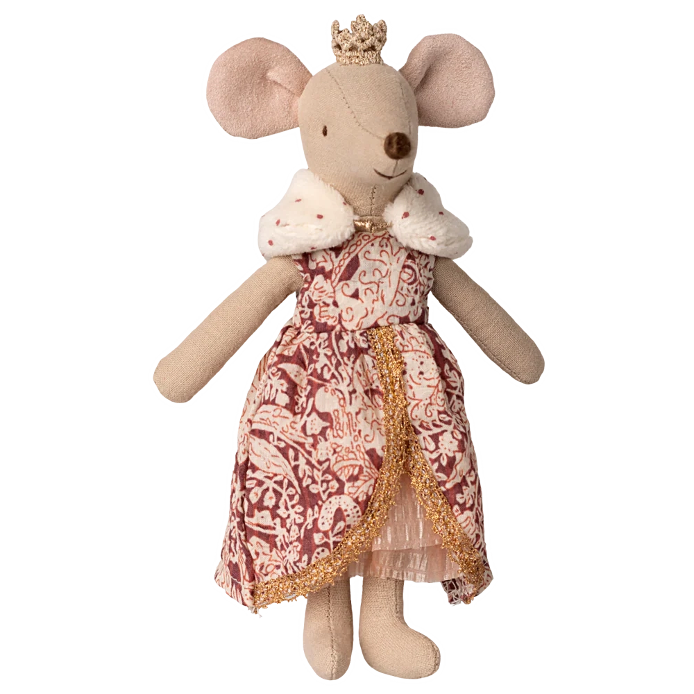 Hier kommt die Königin: Diese Mama Maus ist bereit, die beste Gastgeberin in ihrem Schloss zu sein. Sie trägt ein wunderschönes königliches Kleid und eine Krone und passt perfekt in den Schlosssaal. Maileg setzt bei der Herstellung seiner Kuscheltiere auf eine besonders hochwertige Stoff-Komposition. Das sorgt für ein besonders angenehmes Gefühl beim Spielen.