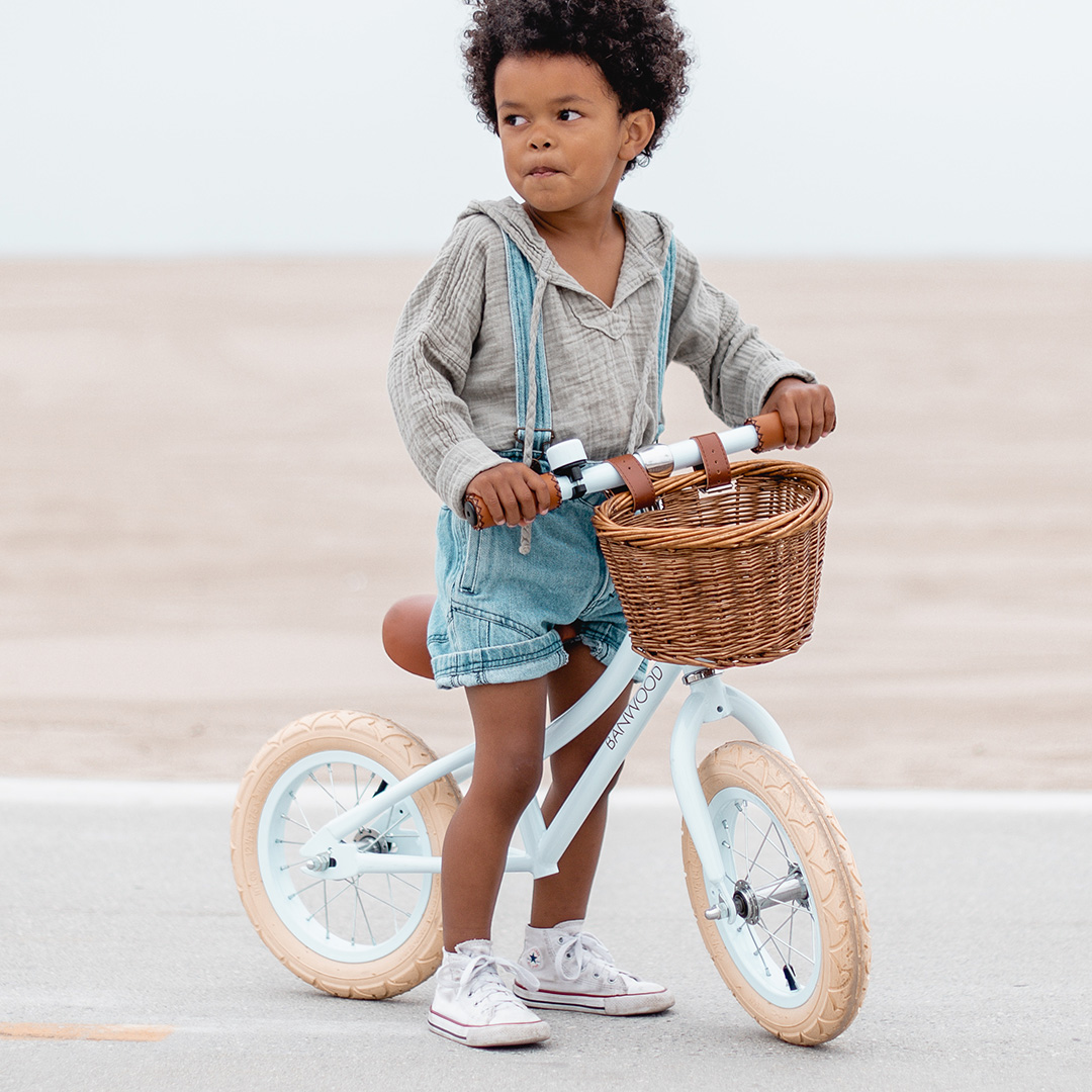 Auf dem „First Go“ unternehmen Kinder, wie der Name des Bikes bereits verrät, ihre ersten Schritte. Das Laufrad von Banwood hilft ihnen dabei, ihren Gleichgewichtssinn zu trainieren – und das auf eine stilvolle Art und Weise dank des hochwertig verarbeiteten Stahlrahmens. Der ergonomisch geformte Sattel sorgt für besondere Bequemlichkeit. Abgerundet wird das Design des „First Go“ durch einen Weidenkorb am Lenkrad, in dem allerlei Kleinigkeiten für unterwegs aufbewahrt werden können.