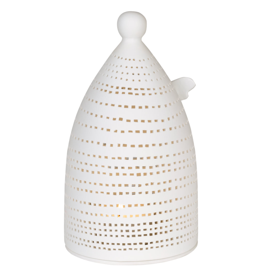 Dieser Lichtengel aus Porzellan des Traditions-Herstellers räder sorgt zu Hause für eine besonders heimelige Stimmung. Die kleinen Öffnungen, die sich rund um den Korpus des Engels befinden, lassen ausstrahlendes Licht in tollen Musterungen hervorscheinen und die Umgebung in eine atmosphärische Beleuchtung tauchen. Erhellt werden sollte er mit LED-Lichtern – für Teelichter ist der Lichtengel nicht geeignet.