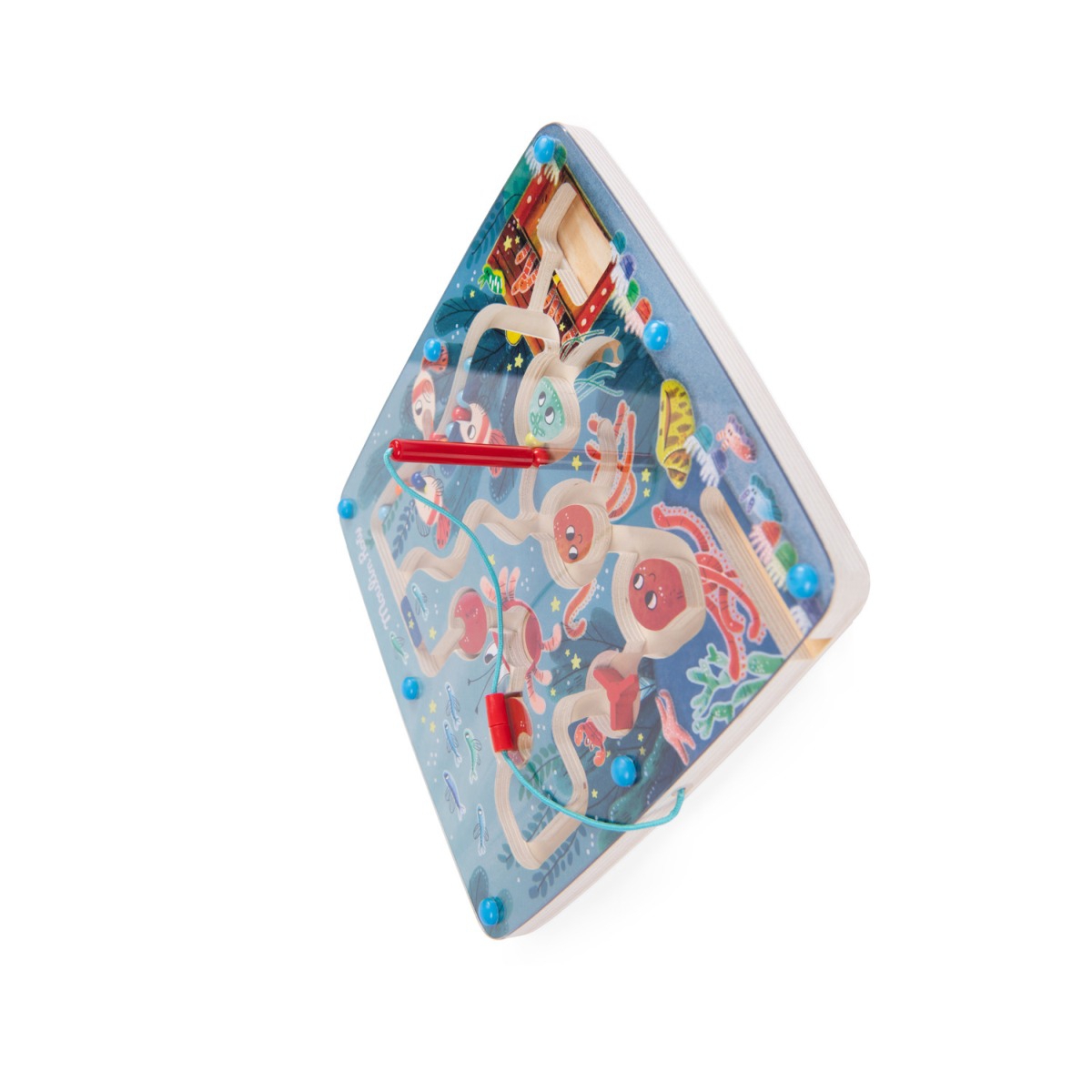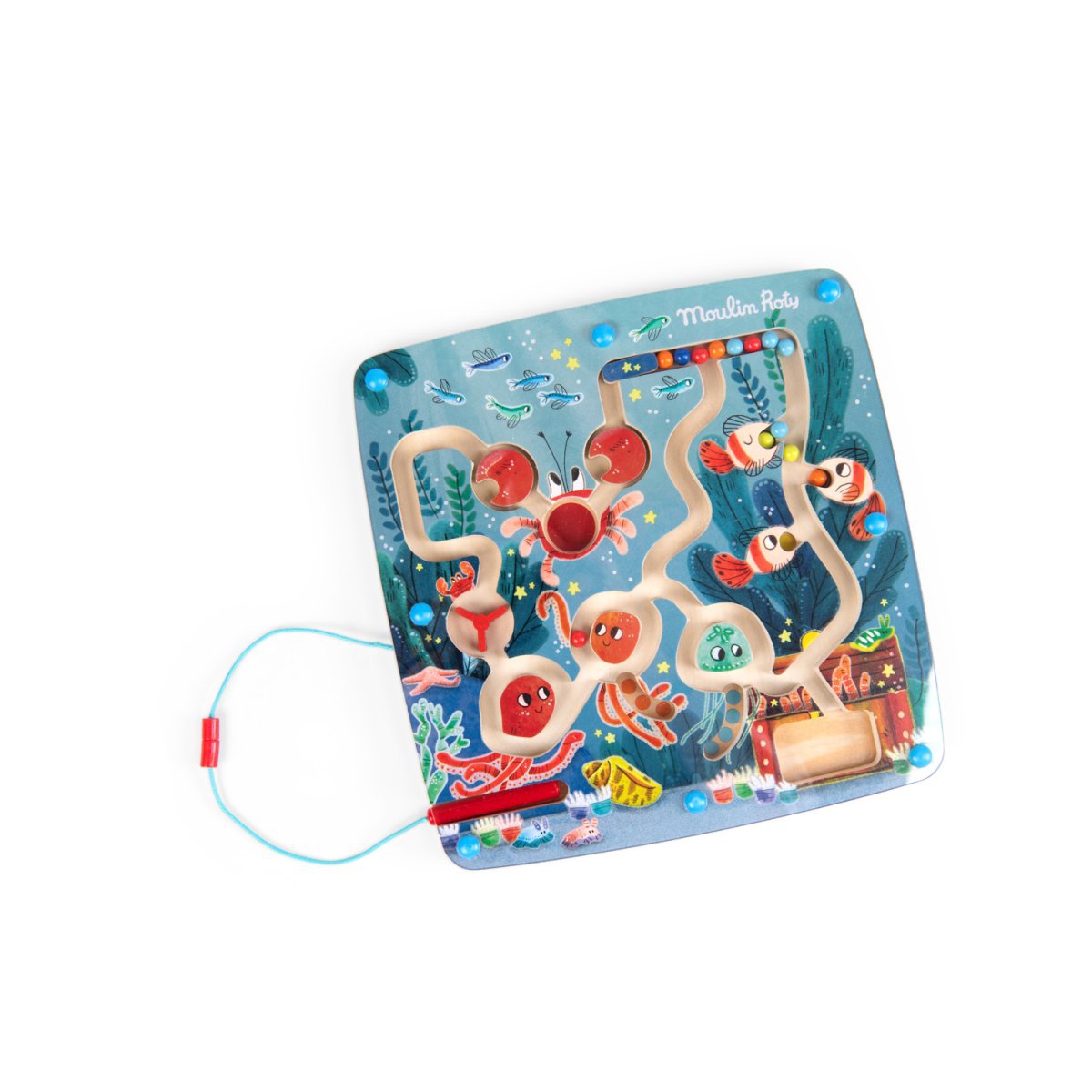 Dieses magnetische Labyrinth aus der „Les aventures de Paulie“-Serie von Moulin Roty bietet neugierigen Kindern jede Menge Spaß: Die farbigen Kugeln werden mit dem Magnetstab durch die Fächer und „Irrwege“ in Richtung Ziel gelenkt. Das fördert zeitgleich auch die Konzentration und Vorstellungskraft.