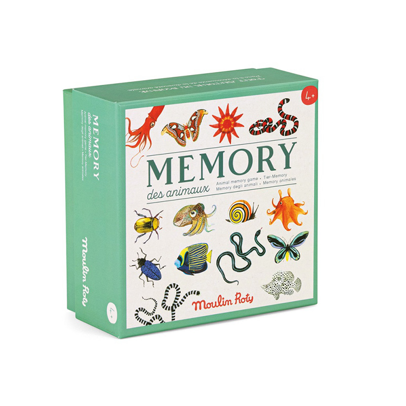 Wo war der Fisch noch gleich …? Dieses klassische Memory-Spiel von Moulin Roty hilft Kindern beim Gedächtnistraining und lehrt sie zudem noch Wissenswertes aus dem Tierreich! Die verschiedenen Motive werden dabei auf runden Kartonförmchen abgebildet.