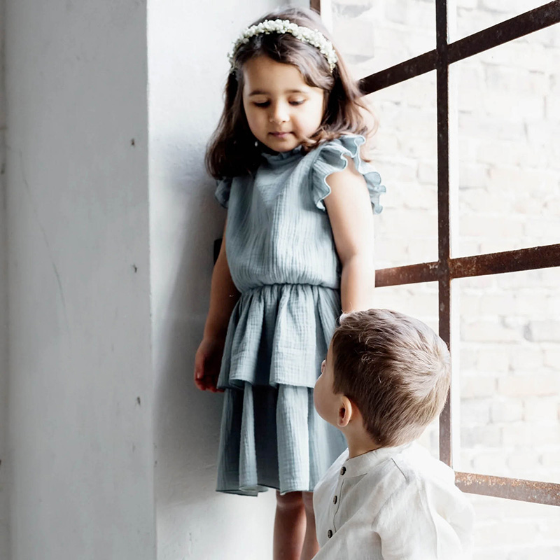 Dieses sommerliche Musselinkleid ist ein absolutes Must-Have für alle Mädchen, die sich gerne elegant und luftig kleiden. Der zarte Stoff sorgt für eine angenehme Haptik auf der Haut und ist ideal für warme Tage. Das Highlight ist die besondere Kragenverarbeitung, die das Kleid zu einem echten Hingucker macht. Das Kleid hat zudem einen schön schwingenden Rockteil, der bei jeder Bewegung mitwirkt und so für eine wunderbare Leichtigkeit sorgt.