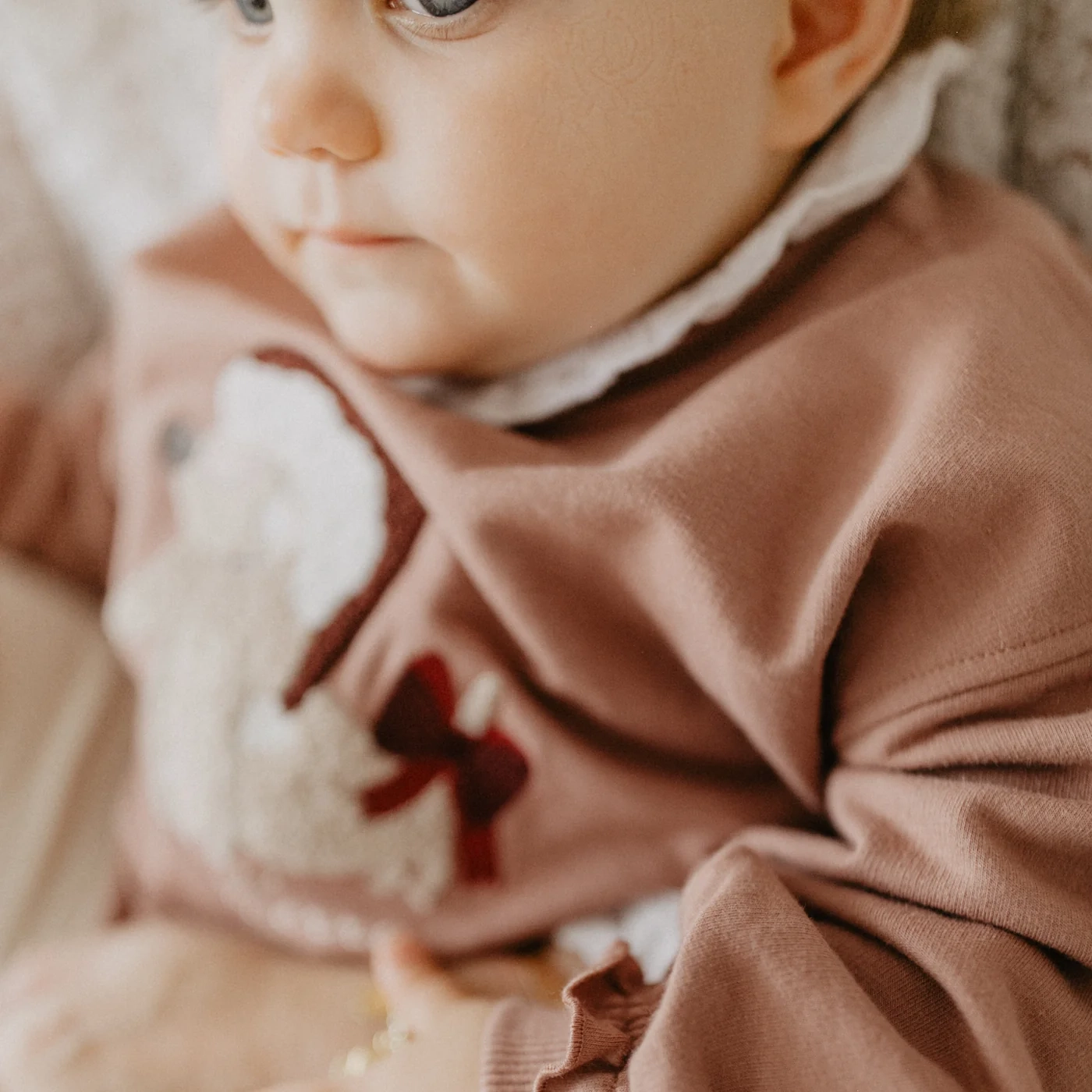 Dieses Oversized Sweatshirt aus weichem Sweatstoff ist ein gemütliches Highlight während der Weihnachtszeit. Der lockere Schnitt und der weiche Sweatstoff sorgen für maximalen Komfort und Bewegungsfreiheit. Dazu kommen zarten Rüschen und eine bequemen Passform, die Wohlfühlen einlädt. Das Highlight ist natürlich das hochwertig gestaltete Dackel-Motiv mit Weihnachtsmütze, das sofort festliche Stimmung verbreitet.