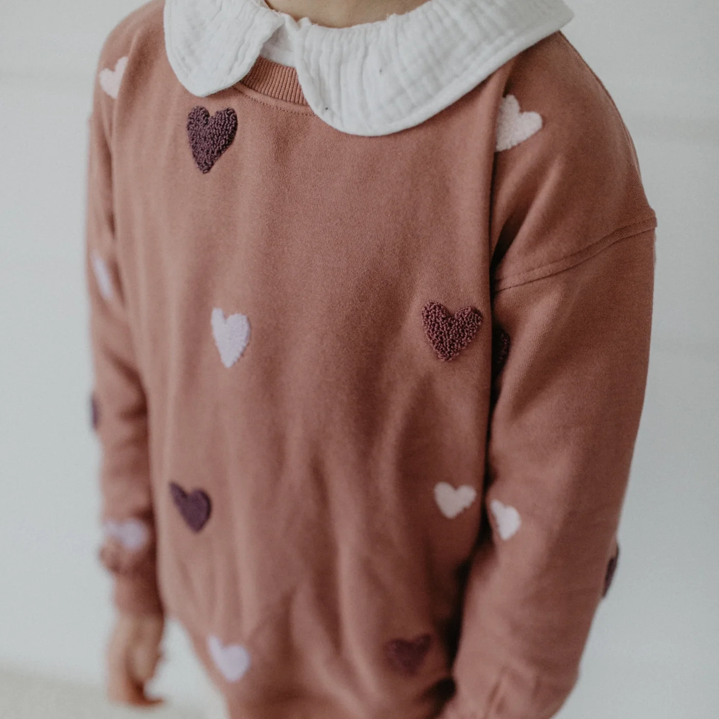 Oversized Sweatshirt „Terry Hearts“ (light burgundy)