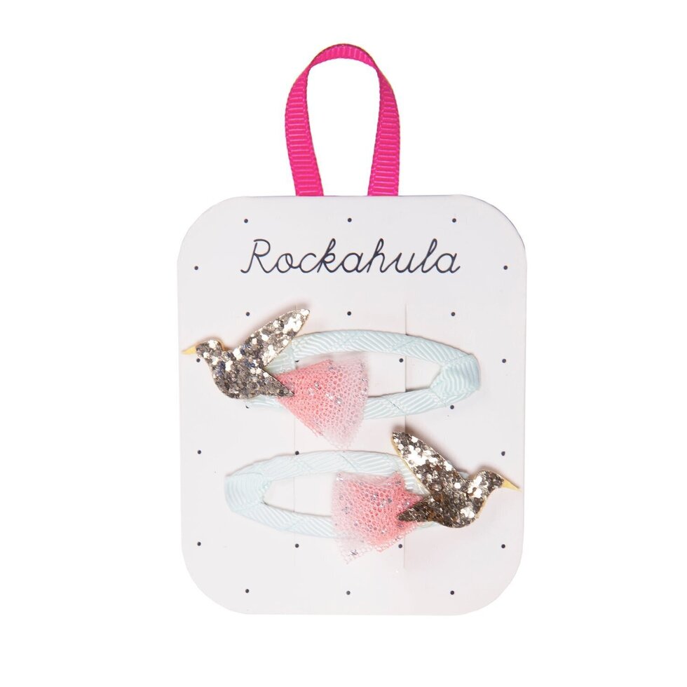 Mit diesem Haarspangen-Set von Rockahula, bestehend aus zwei mit Stoffband umwickelten Haarklammern, fallen die Kleinen besonders modisch auf. Die in süßer Paradiesvogel-Optik gehaltenen Haarklammern sind bei jedem Outfit ein echter Hingucker!