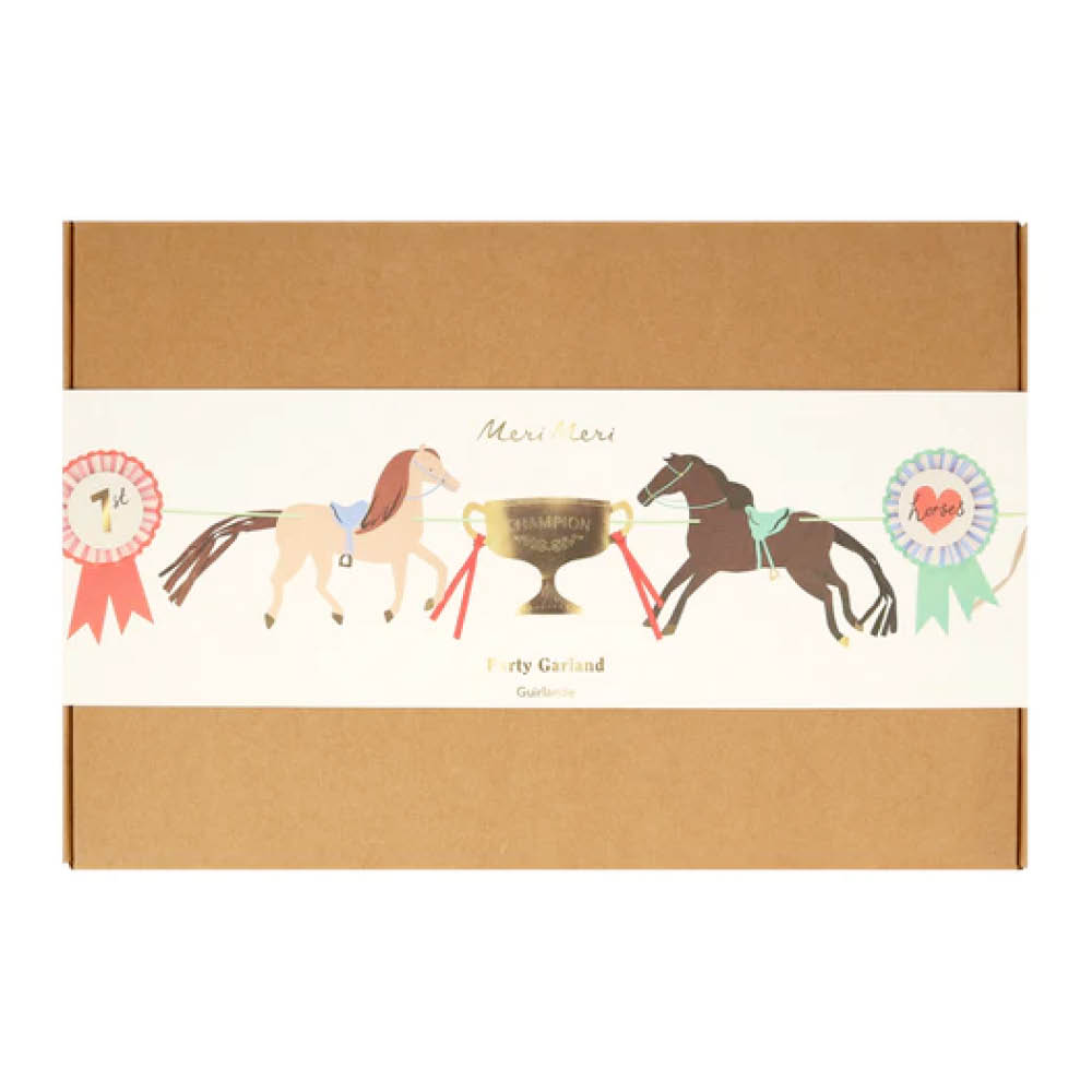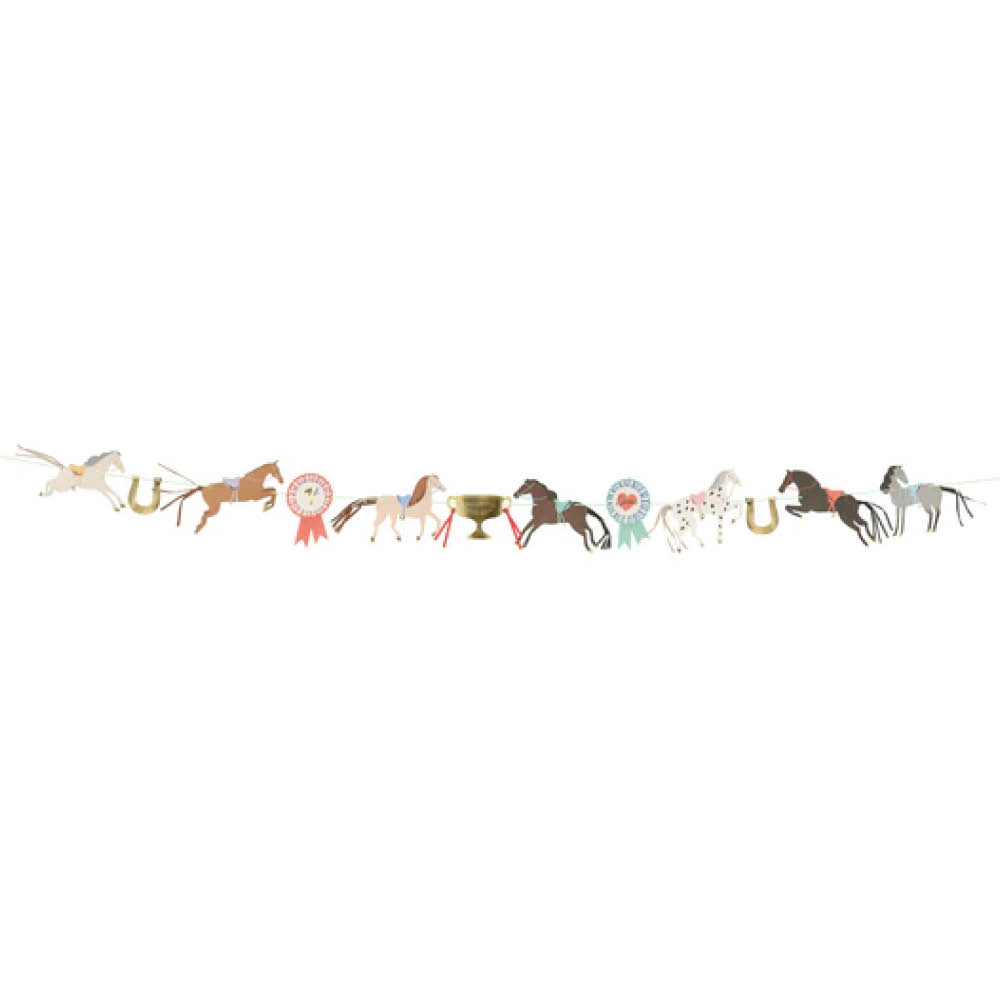 Diese dekorative Girlande von Meri Meri darf auf der nächsten Mottoparty für Pferdenarren auf keinen Fall fehlen. An der Schnur befinden sich unterschiedliche Pferde und Symbole wie Hufeisen oder Pokale von der Pferderennbahn, die für eine tierische Atmosphäre sorgen.