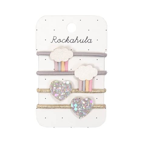 Mit diesem Haargummi-Set von Rockahula, bestehend aus 4 Haargummis, fallen die Kleinen besonders modisch auf. Die in Regenwolken- und Herz-Optik gehaltenen Haargummis sind bei jedem Outfit ein echter Hingucker!