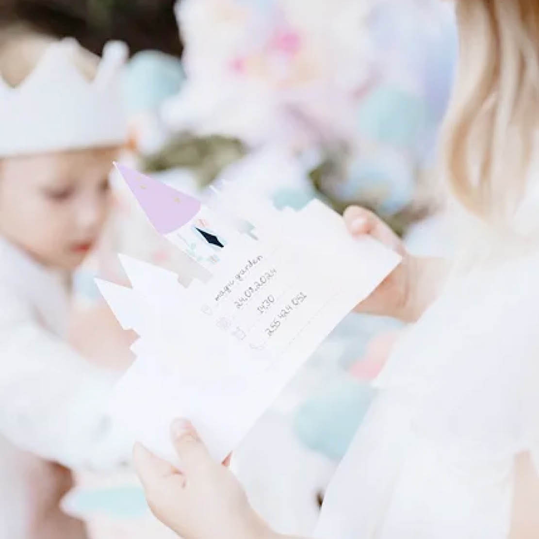 Die Planung einer Geburtstagsfeier beginnt bereits mit der Wahl der Einladungskarten. Diese hier zeigen jedem, dem sie überreicht werden, worauf er oder sie sich einstellen muss: auf eine märchenhafte Party, die das Herz aller kleinen Prinzessinnen & Prinzen höher schlagen lässt! Die Stanzform macht die Einladungskarten dabei optisch besonders ansprechend und sorgt dafür, dass sie sich von anderen gut abheben.