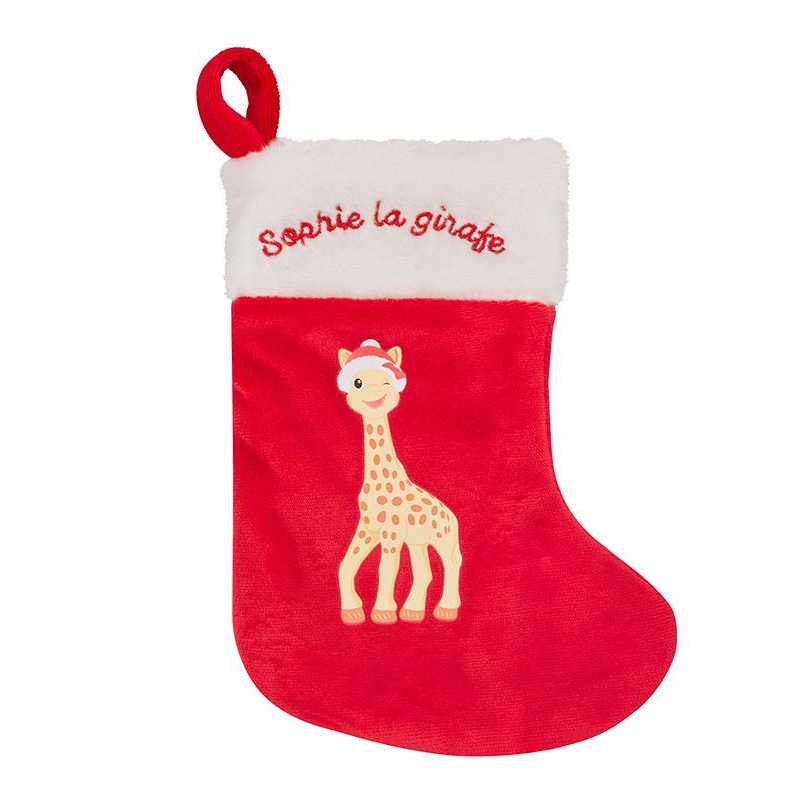 • enthält eine Sophie la girafe, eine Weihnachtssocke und ein Plüschtier