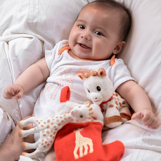 Dieses Set macht Babys allererstes Weihnachten garantiert unvergesslich! Es enthält eine Sophie la girafe – Babys erstes Spielzeug, das alle seine Sinne stimuliert – und eine Weihnachtssocke mit dem ikonischen Sophie-Motiv für kleine Geschenke oder zu Dekozwecken. Ein kleines Plüschtier zum Knuddeln ist ebenfalls enthalten.