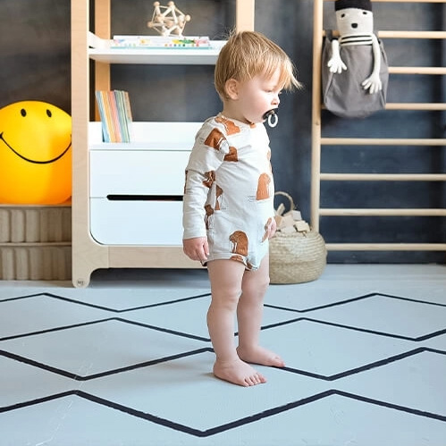 Rutschfest, weich, Allergikerfreundlich und leicht zu reinigen: Die aus hochwertigem EVA-Schaum bestehenden Spielmatte von eeveve sind ideal für das tägliche Spiel von Babys und Kleinkindern geeignet, können aber auch von Erwachsenen genutzt werden – etwa für Yoga-Übungen oder Pilates. Da sie eine dämpfende Wirkung haben, sind sie auch sehr gut unter einer Schaukel, einem Spielring oder einer Rutsche verwendbar. Jede der Matten besteht aus mehreren Fliesen, die im Stil eines Puzzles miteinander kombiniert werden können, ohne dass sichtbare Übergänge entstehen. Das sorgt gleichzeitig dafür, dass sich mehrere Spielmatten – auch in anderen Farbtönen und Mustern – zu einer großen zusammenfügen lassen.