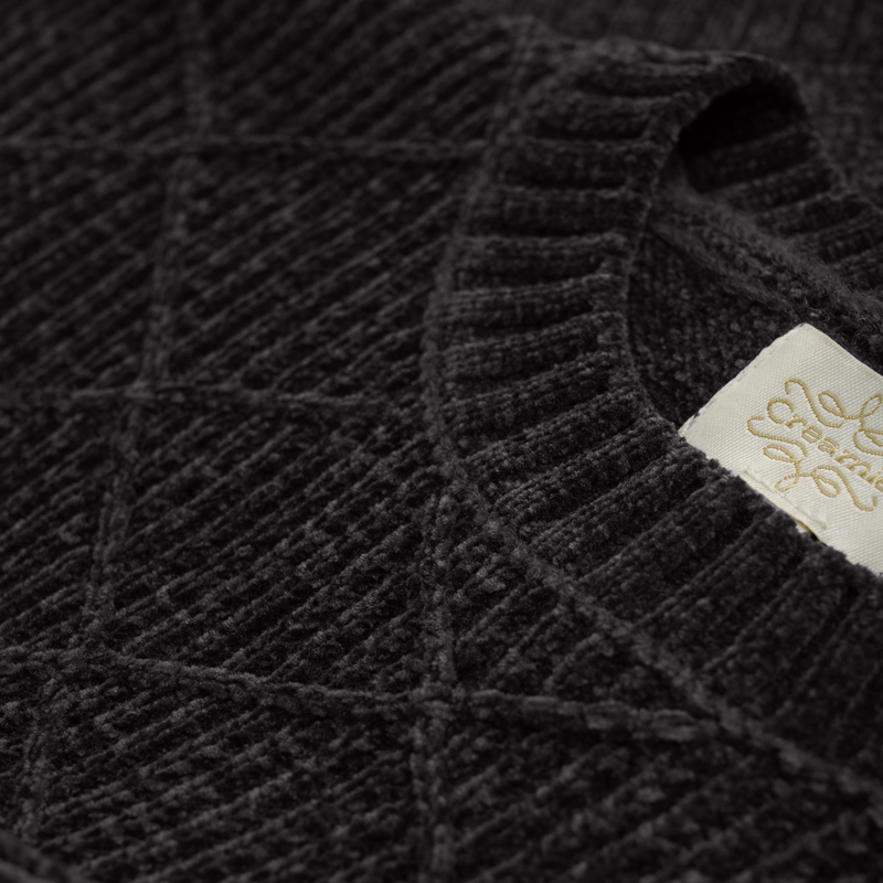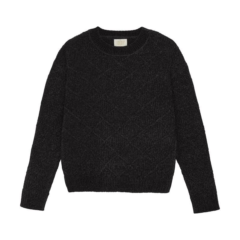Klassische Strickbluse mit Karomuster von Creamie aus Chenille-Garn. Die Bluse hat lange Ärmel und einen Rundhalsausschnitt. In den Armausschnitten und an der Unterseite befinden sich breite Rippbündchen. Die Bluse ist in einer köstlichen und weichen Qualität gefertigt.