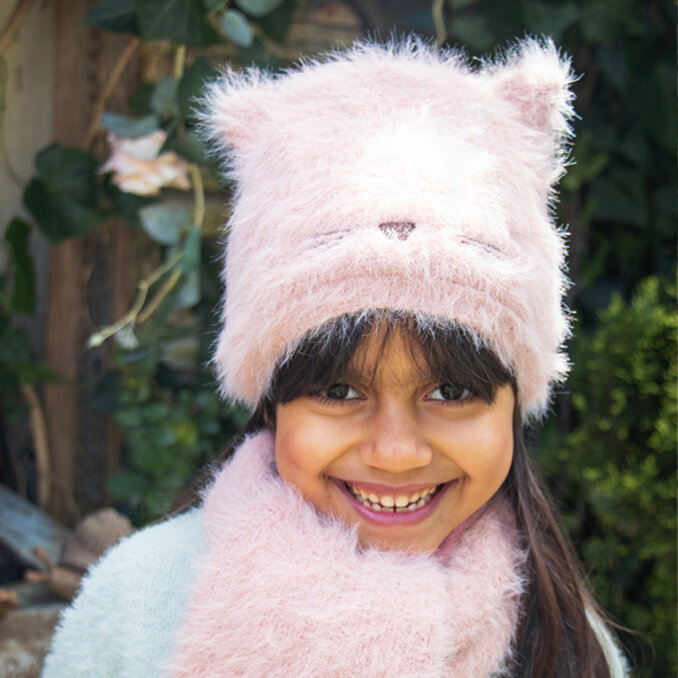 • aus Wimperngarn hergestellte Kuschel-Mütze mit eingearbeitetem Fleece
