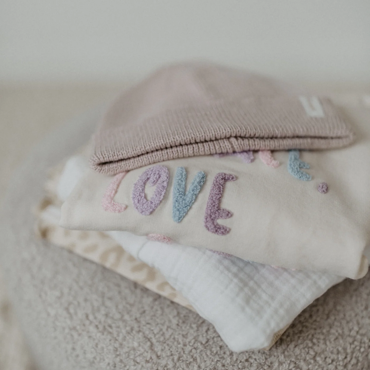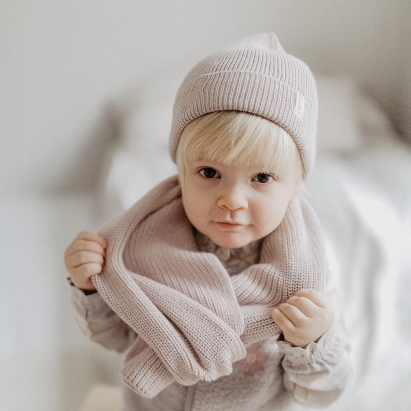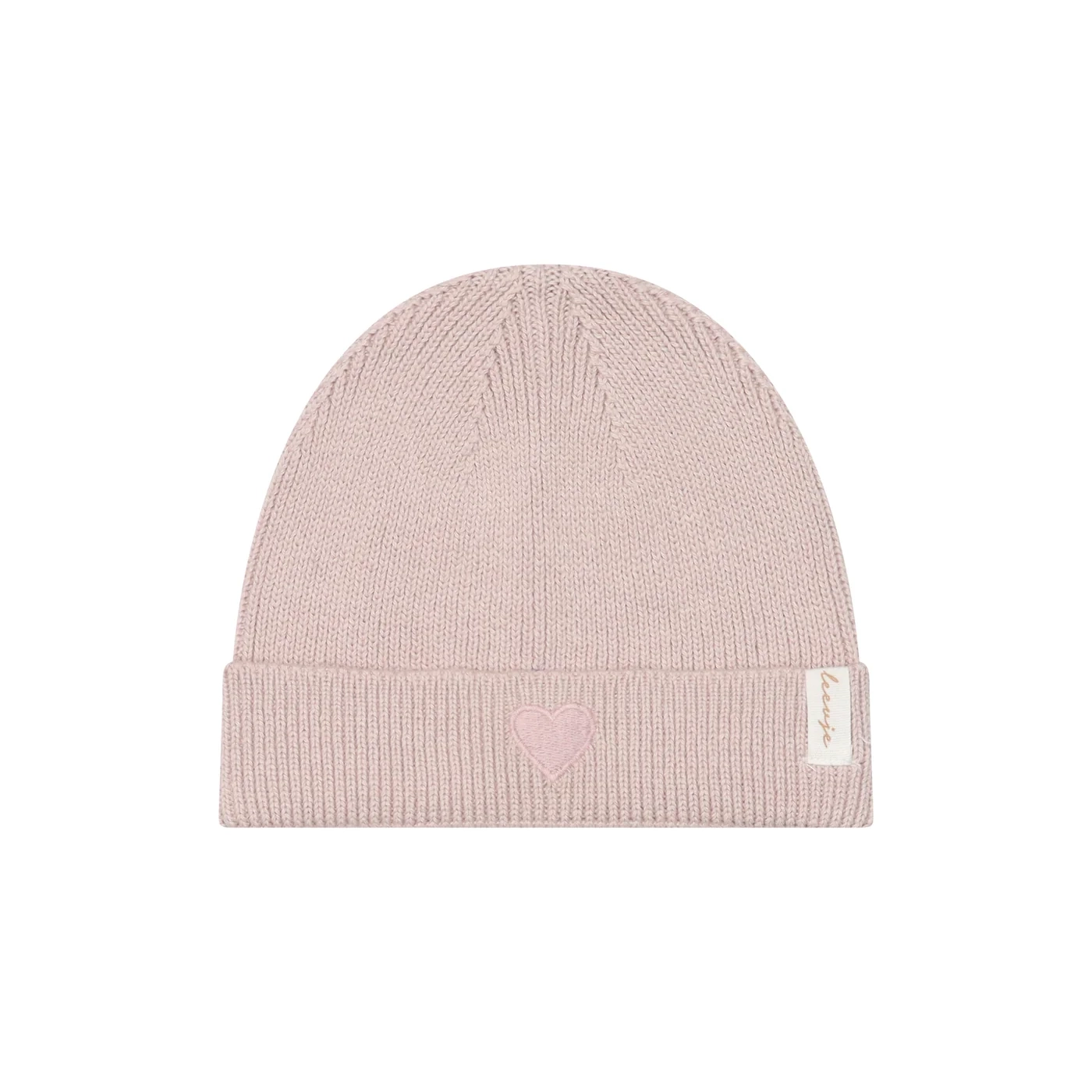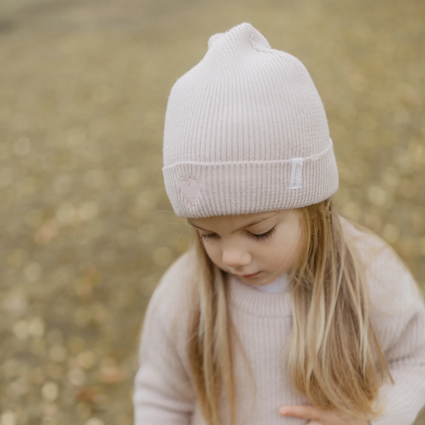 Diese Strickmütze hält kleine Köpfe wohlig warm und rundet jedes Outfit mit einem Hauch zeitloser Schlichtheit ab – weich, stilvoll und perfekt für kühle Tage. Die Herzchen-Stickerei auf der Vorderseite setzt dabei einen liebevollen Blickfang.
