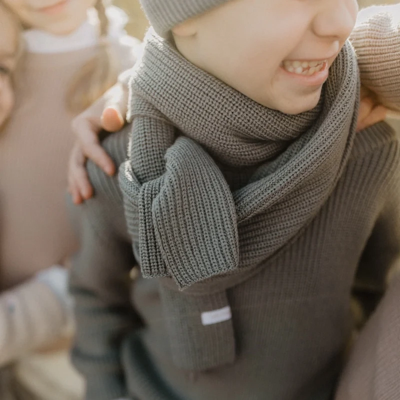 Dieser kuschelige Strickschal aus hochwertiger Merinowolle ist der perfekte Begleiter für die kalten Tage. Ob in eisiger Kälte zum Rodeln oder im Frühjahr an einem windigen Seetag: Er hält Kinder um den Hals so richtig warm. Dabei ist er angenehm weich, temperaturregulierend und strapazierfähig – perfekt für empfindliche Kinderhaut und den Alltag.