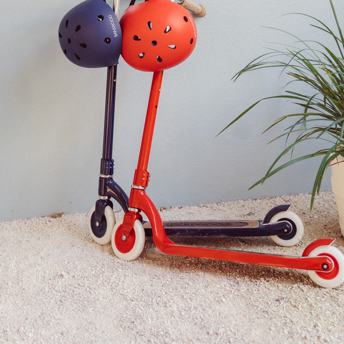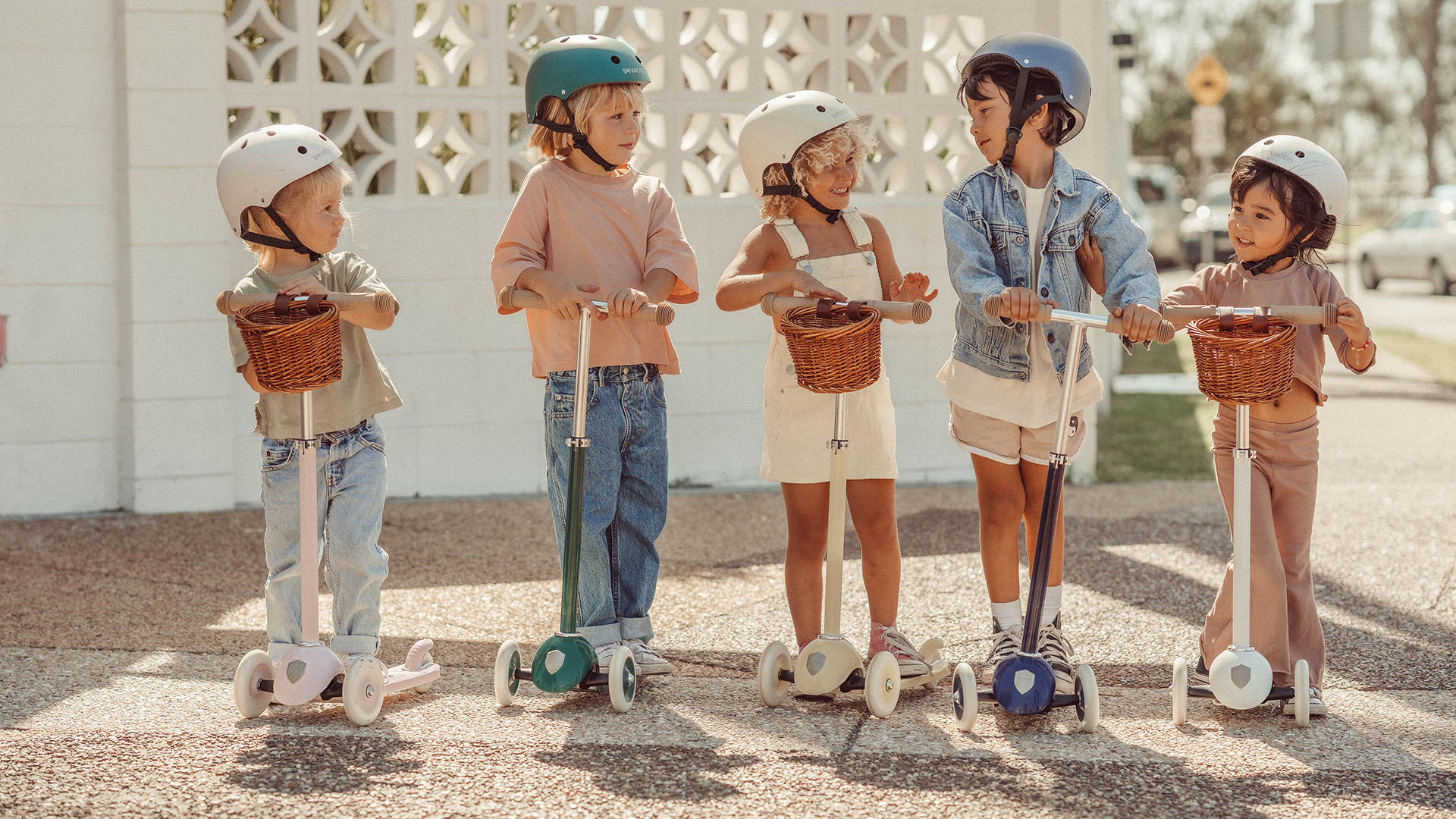 Der in cooler Vintage-Optik gehaltene Maxi-Kinderroller eignet sich vor allem für ältere Kids ab sechs Jahren. Entworfen wurde der Scooter in einem zeitlosen Retro-Look, ohne dabei an Funktionalität und Sicherheit einzubüßen. So verfügt er über einen ergonomischen T-Lenker, der sich leicht an die Körpergröße anpassen lässt, einen leichten Aluminiumrahmen, ein klassisches Lenksystem wie bei einem Fahrrad, Gummigriffe im Vintage-Stil und eine rutschfeste Trittfläche aus Eichenholz für eine sichere Fahrt. Dazu kommt ein trendiger Weidekorb, in dem wichtige Utensilien aufbewahrt werden können – zum Beispiel Snacks für ein Picknick!