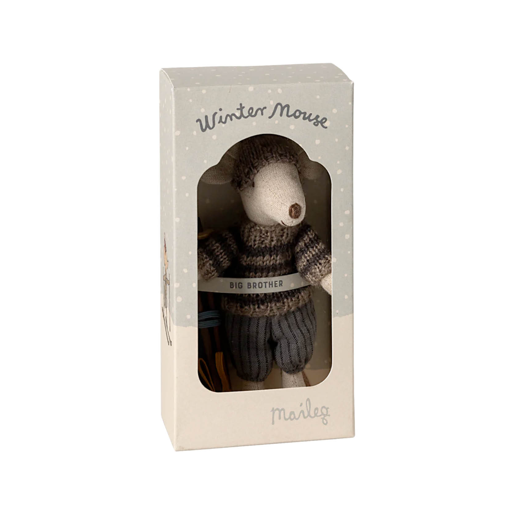 Wintermaus mit Ski Set, Großer Bruder (grau)