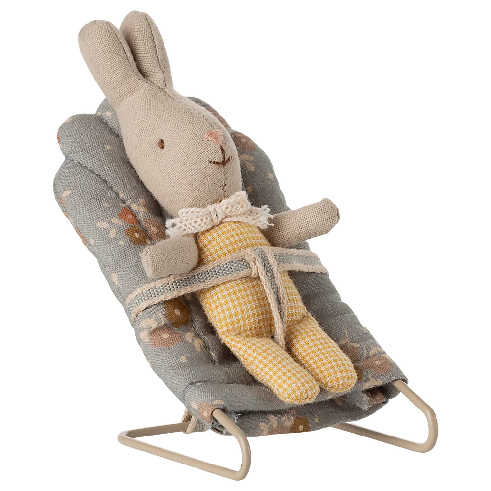 Das liebevoll gestaltete Miniatur-Zubehör hilft dabei, den Alltag der kleinen Häschen von Maileg abwechslungsreicher zu gestalten. Dabei achtet Maileg nicht nur auf eine hochwertige Verarbeitung, sondern auch auf viel Liebe zum Detail. Vor allem das geblümte Muster in blau dieser Wippe, in der kleine Plüschtierchen einen gemütlichen Schlafplatz finden, überzeugt optisch.