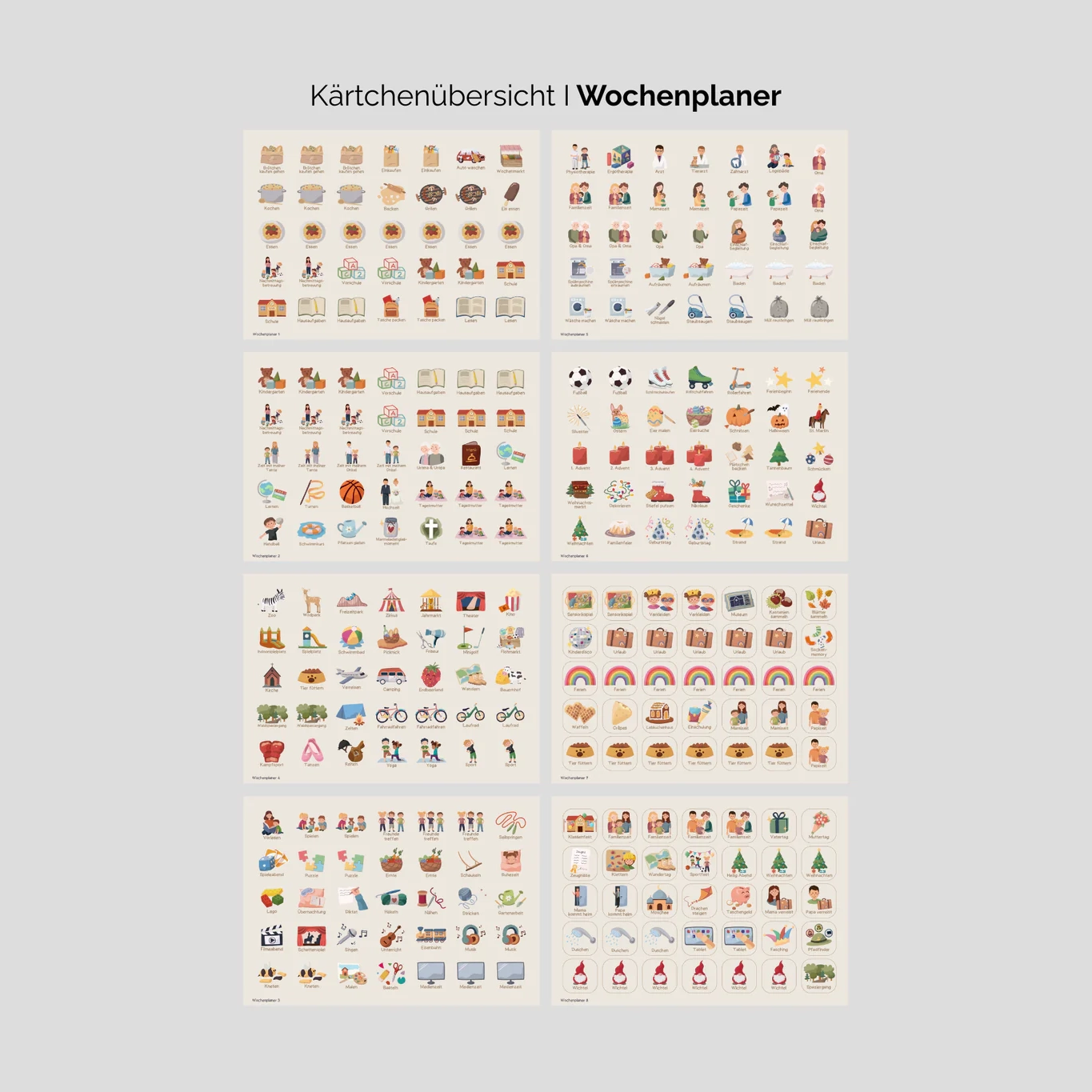 • mit einem ganzen Blanko-Bogen für eigene Kärtchen wird die Wochenplanung zu einem kreativen Familienprojekt