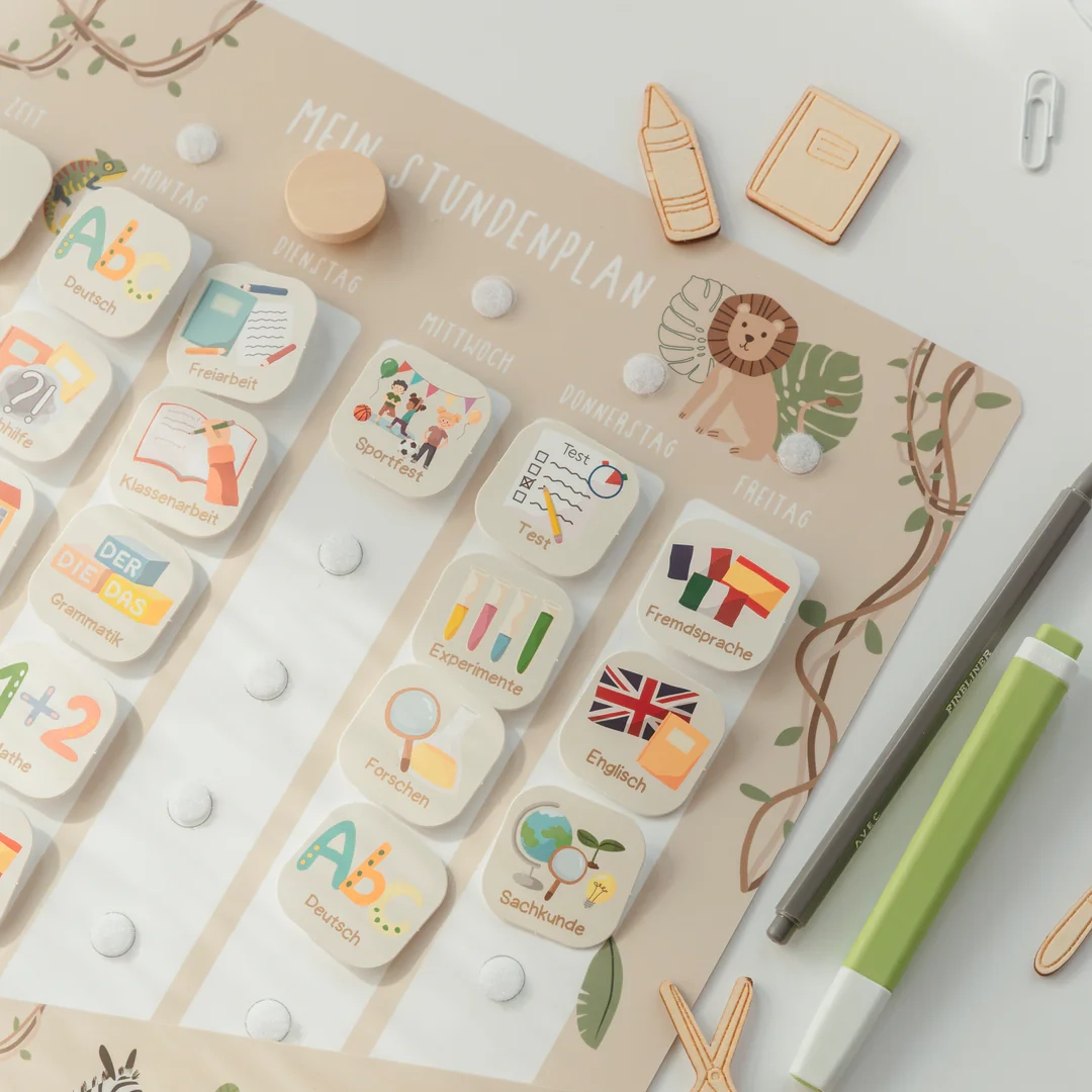 Mit dem Wochenplaner von inliebekind wird die Organisation des Alltags für Kinder spielerisch und interaktiv. Der Planer hilft dabei, eine feste Struktur zu schaffen, und fördert gleichzeitig die Selbstständigkeit und Organisationsfähigkeit der Kleinen.